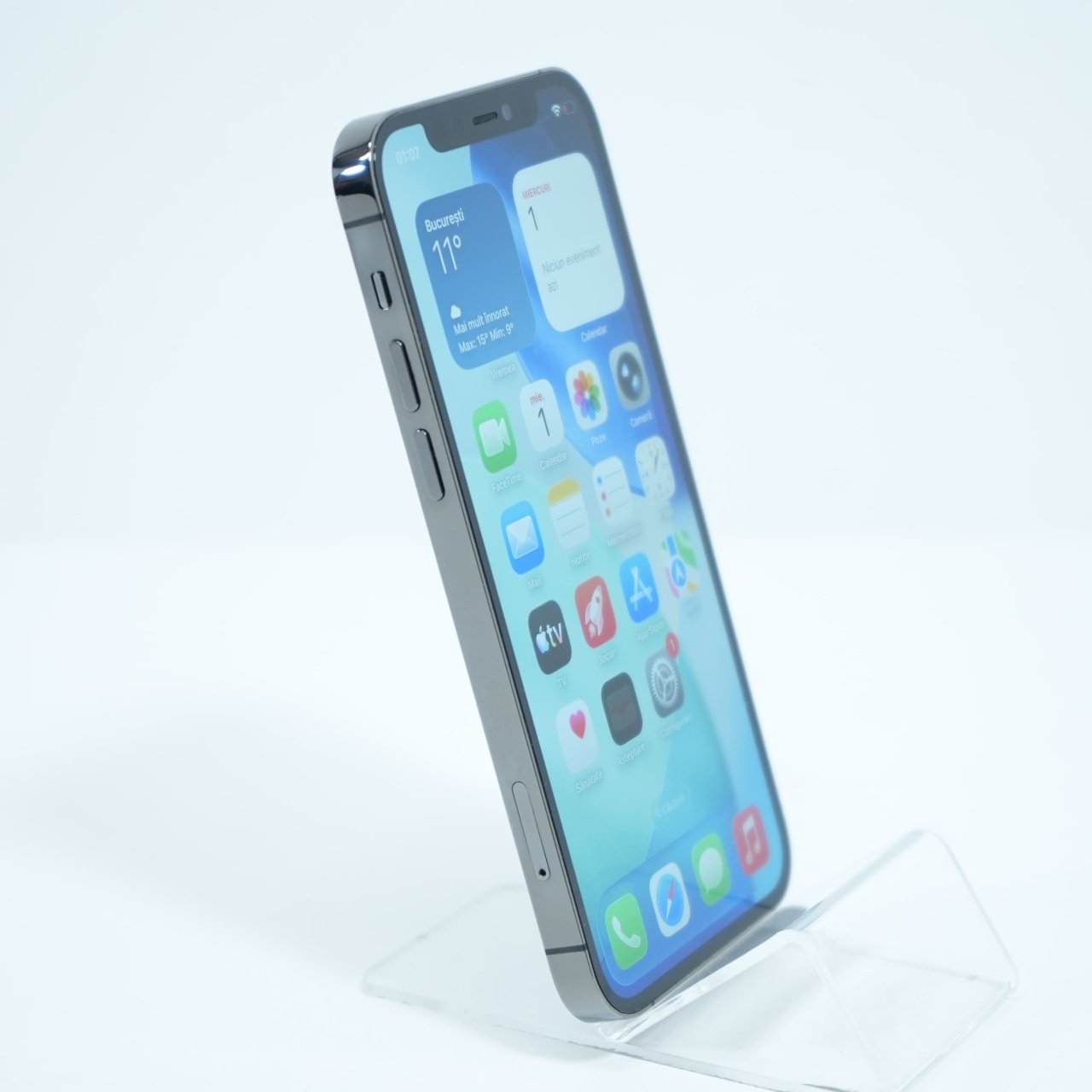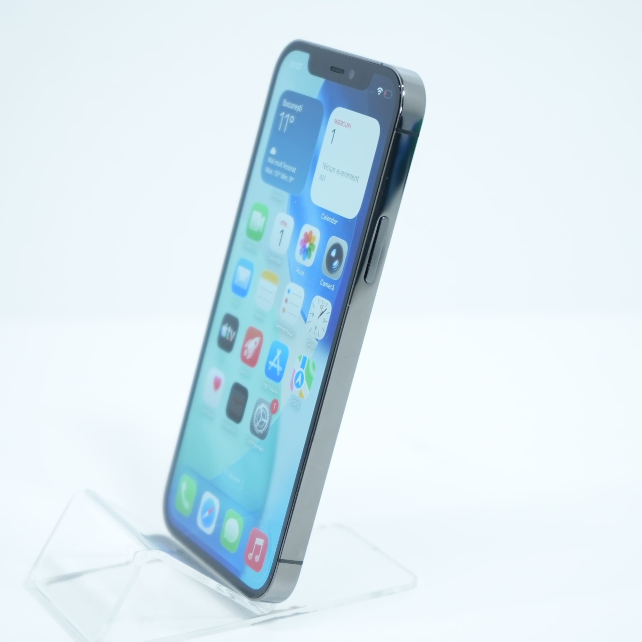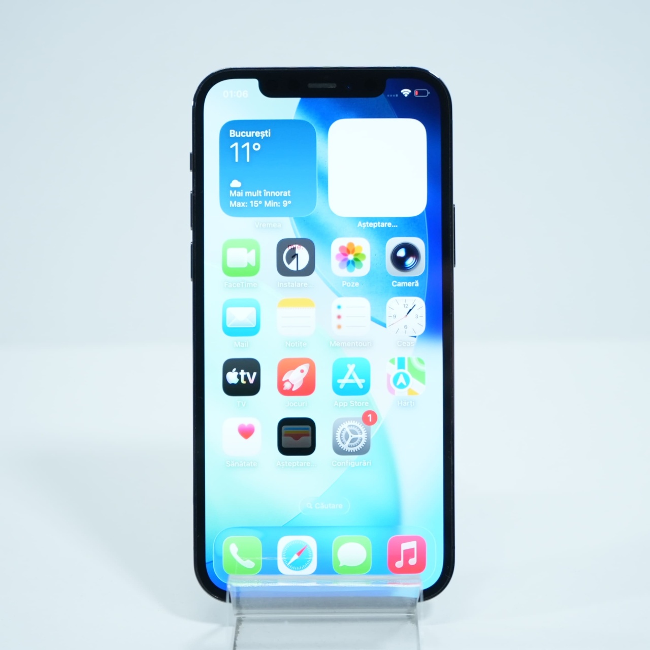 Ecran: 6.1 Procesor: Apple A14 Memorie RAM: 6 GB Memorie interna: 256GB Camera foto: Principala 12 MPx, Frontala 12 MPx Stare retea: Liber de rețea