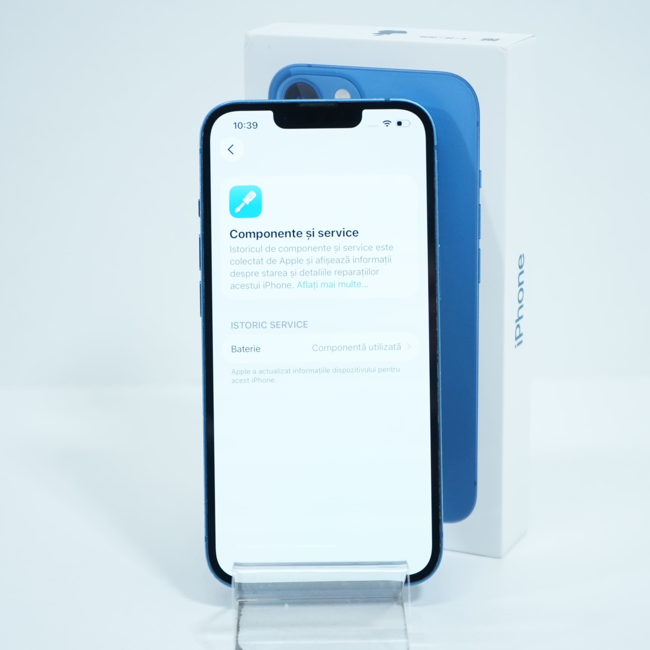 Ecran: 6.1 Procesor: Apple A15 Bionic Memorie RAM: 4GB Memorie interna: 128GB Camera Foto: Principala 12 MPx, Frontala 12 MPx Stare retea: Liber de rețea
