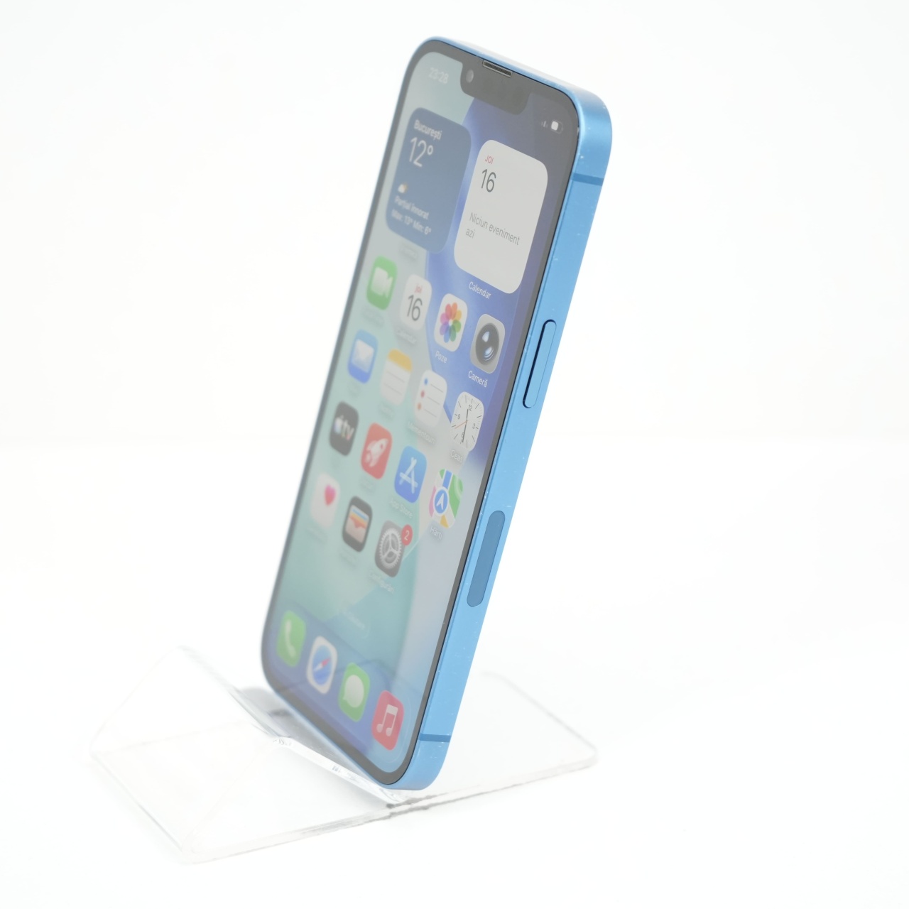 Ecran: 6.1 Procesor: Apple A15 Bionic Memorie RAM: 4 GB Memorie interna: 128GB Camera Foto: Principala 12 MPx, Frontala 12 MPx Stare retea: Liber de rețea