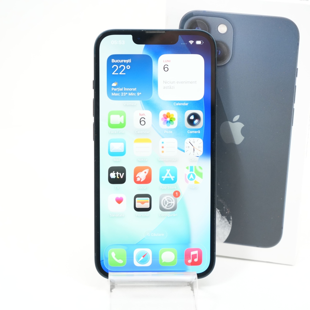 Ecran: 6.1 Procesor: Apple A15 Bionic Memorie RAM: 4 GB Memorie interna: 128GB Camera Foto: Principala 12 MPx, Frontala 12 MPx Stare retea: Blocat Orange