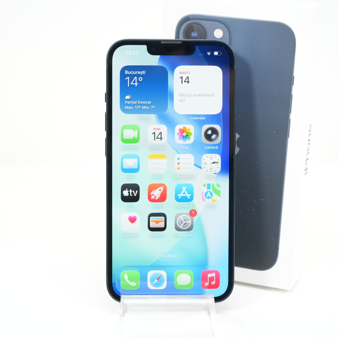 Ecran: 6.1 Procesor: Apple A15 Bionic Memorie RAM: 4 GB Memorie interna: 128GB Camera Foto: Principala 12 MPx, Frontala 12 MPx Stare retea: Liber de rețea