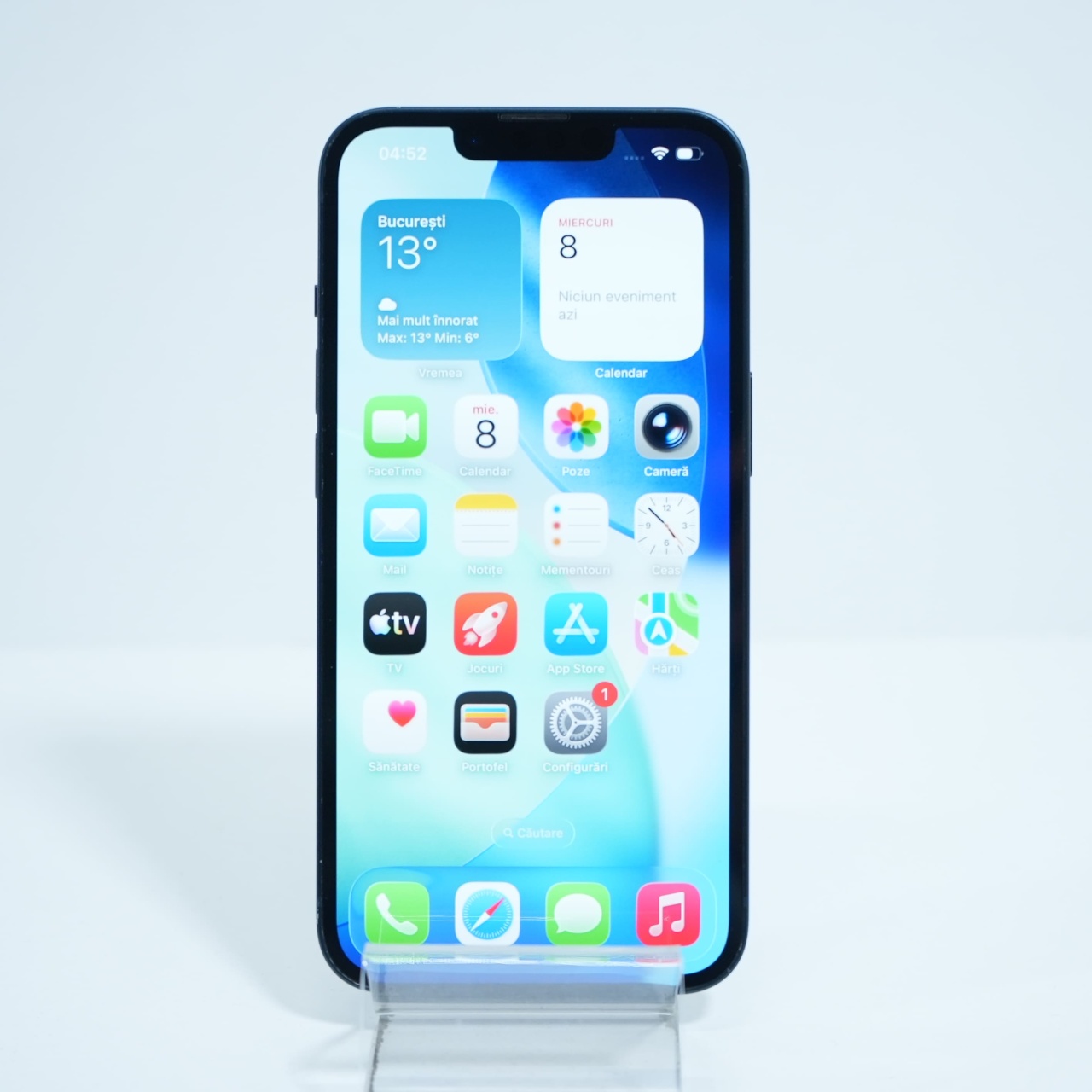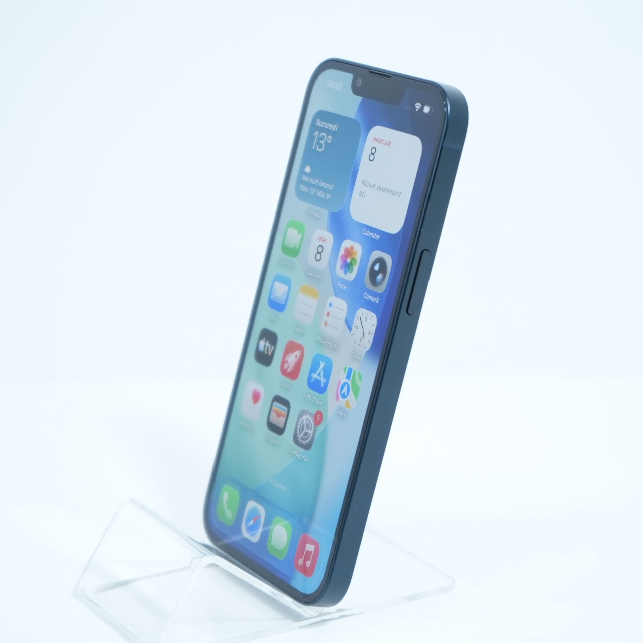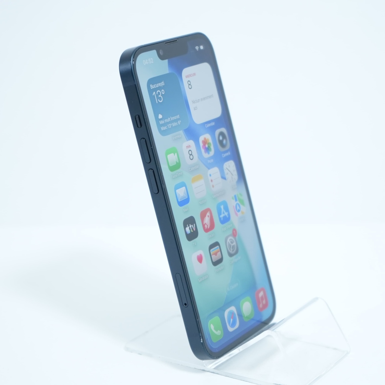 Ecran: 6.1 Procesor: Apple A15 Bionic Memorie RAM: 4GB Memorie interna: 128GB Camera Foto: Principala 12 MPx, Frontala 12 MPx Stare retea: Liber de rețea