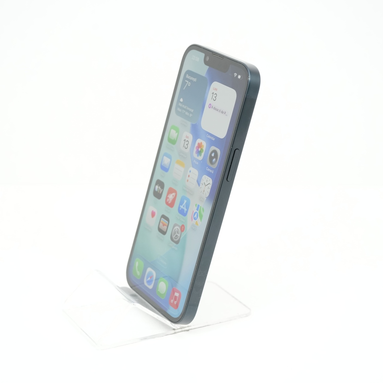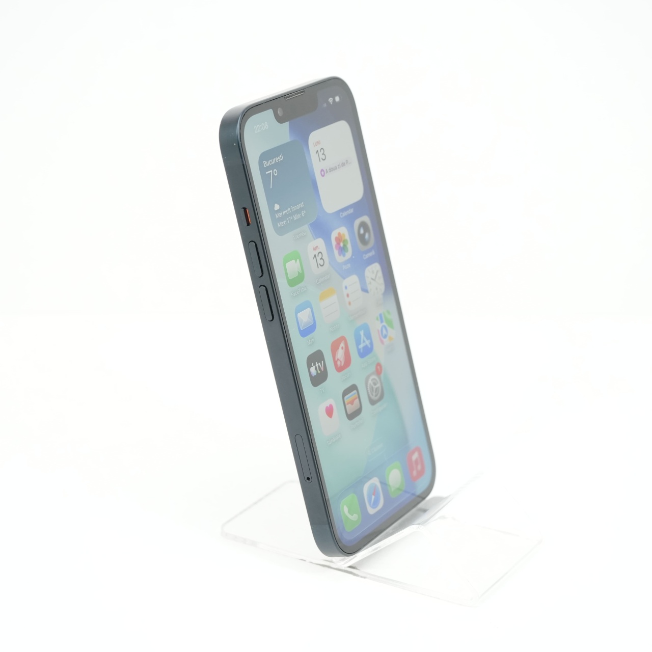 Ecran: 6.1 Procesor: Apple A15 Bionic Memorie RAM: 4GB Memorie interna: 128GB Camera Foto: Principala 12 MPx, Frontala 12 MPx Stare retea: Liber de rețea