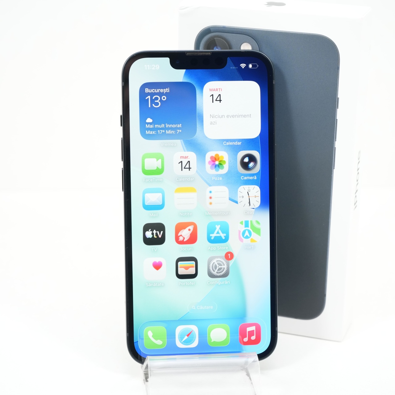 Ecran: 6.1 Procesor: Apple A15 Bionic Memorie RAM: 4 GB Memorie interna: 128GB Camera Foto: Principala 12 MPx, Frontala 12 MPx Stare retea: Liber de rețea