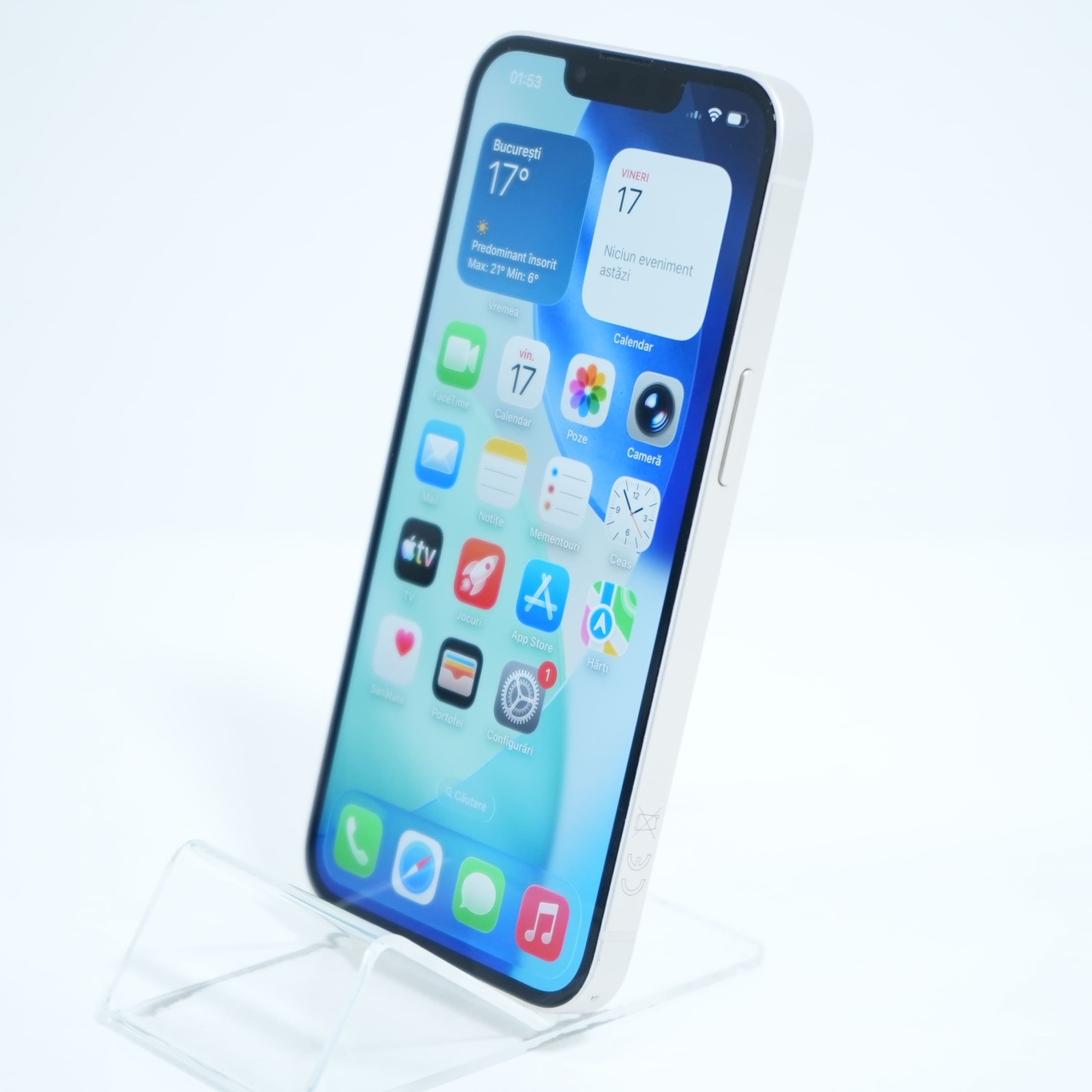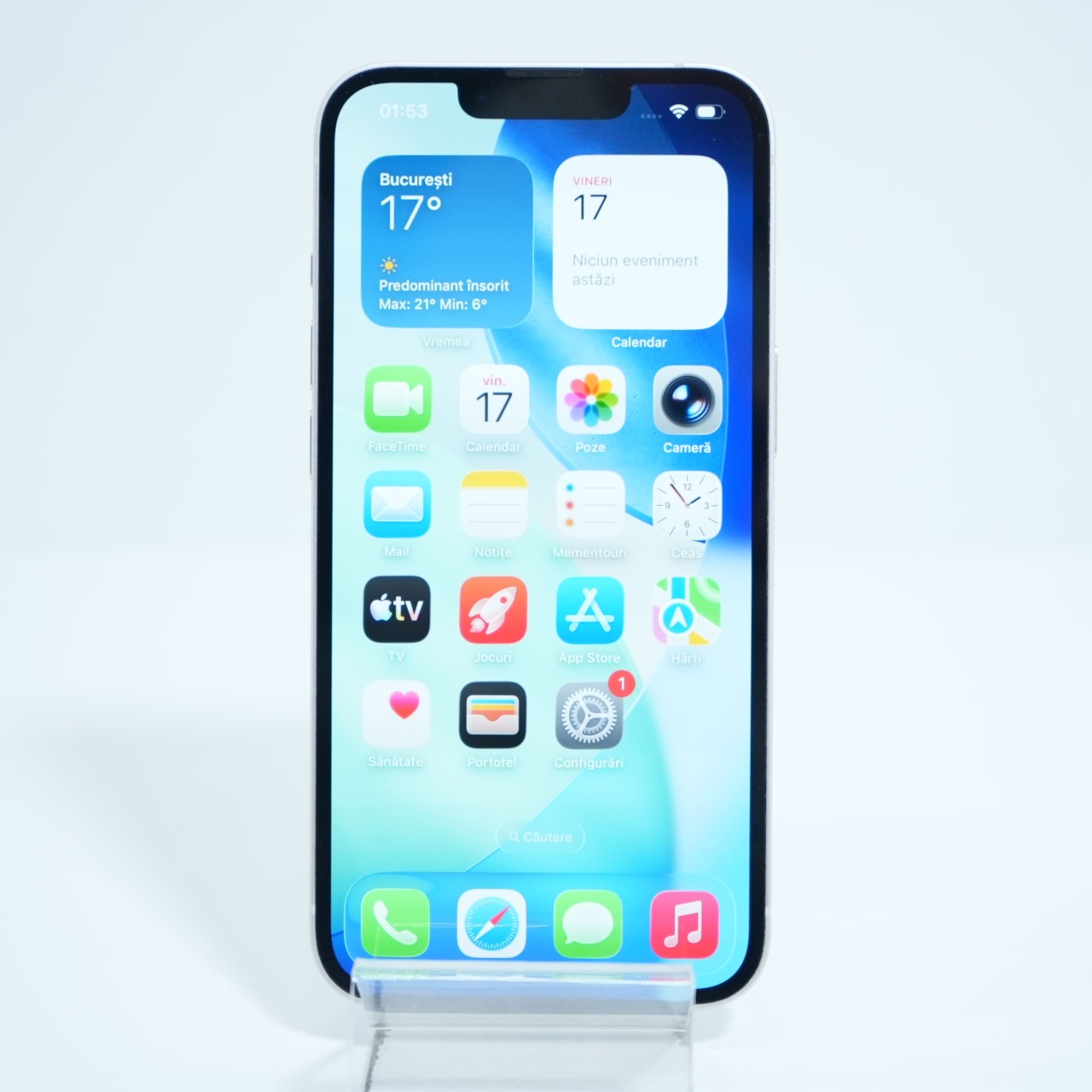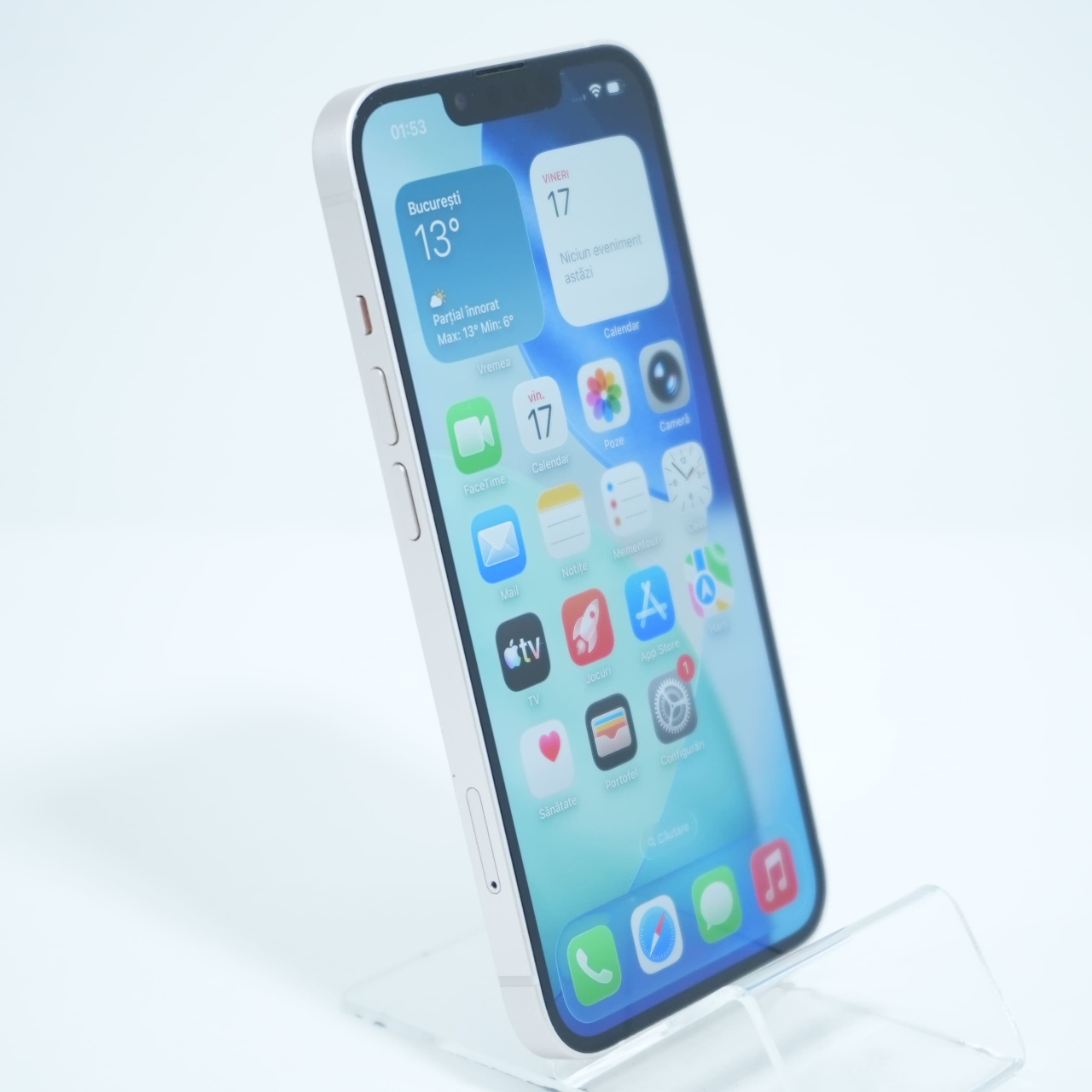 Ecran: 6.1 Procesor: Apple A15 Bionic Memorie RAM: 4 GB Memorie interna: 128GB Camera Foto: Principala 12 MPx, Frontala 12 MPx Stare retea: Liber de rețea