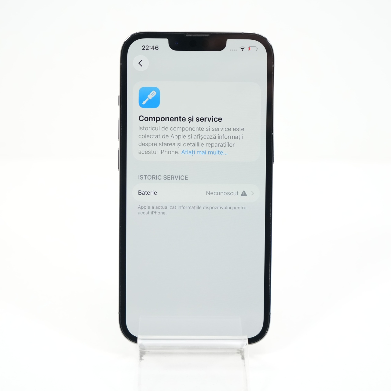 Ecran: 6.1, Refresh Rate 120 Hz Procesor: Apple A15 Bionic Memorie RAM: 6 GB Memorie interna: 128GB Camera Foto: Principala 12 MPx, Frontala 12 MPx Stare retea: Liber de rețea