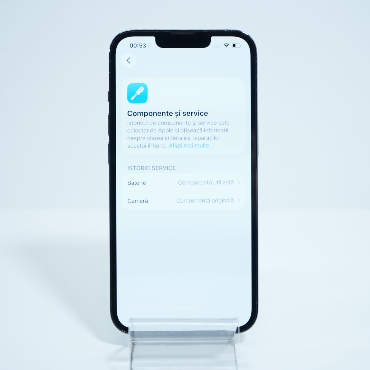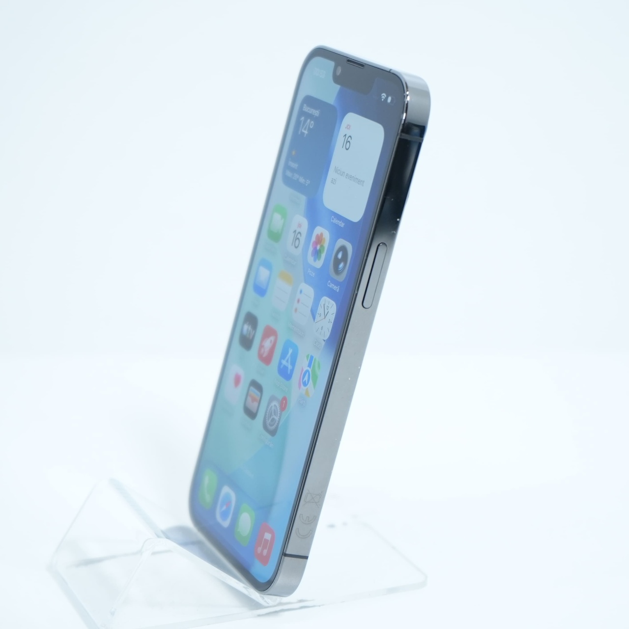 Ecran: 6.1, Refresh Rate 120 Hz Procesor: Apple A15 Bionic Memorie RAM: 6 GB Memorie interna: 128GB Camera Foto: Principala 12 MPx, Frontala 12 MPx Stare retea: Liber de rețea Mesaj camera componenta originala
