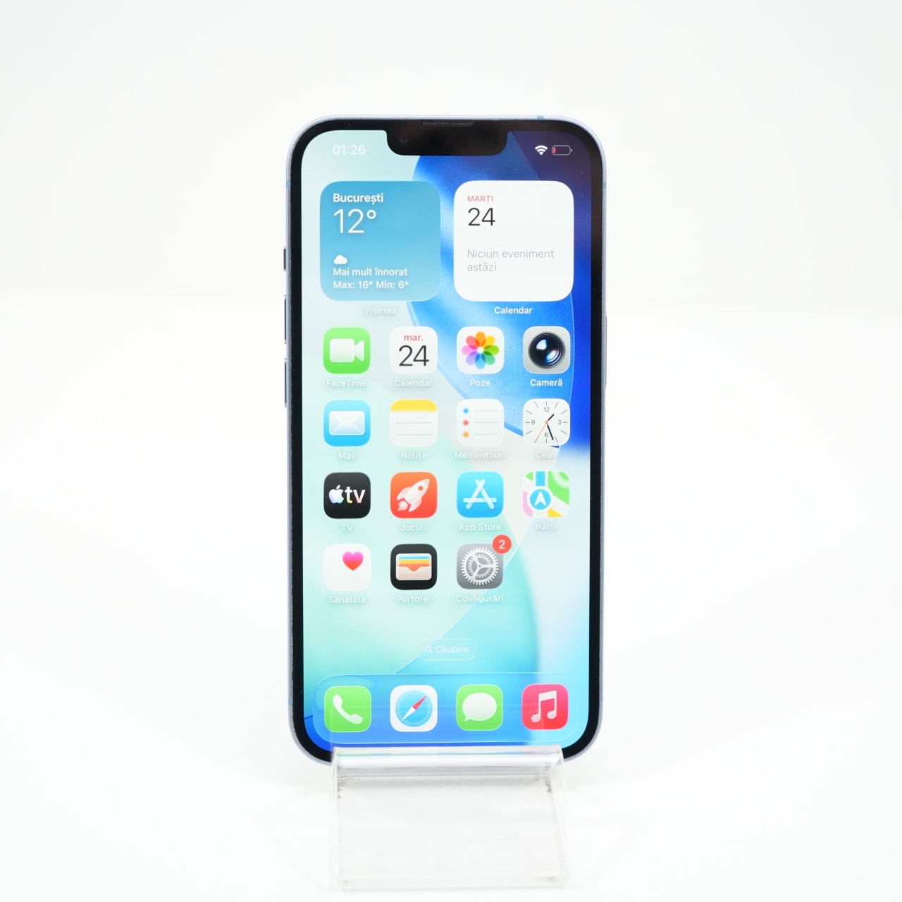Ecran: 6.1 Procesor: Apple A15 Bionic Memorie RAM: 6GB Memorie interna: 128GB Camera foto: Principala 12 MPx, Frontala 12 MPx Stare retea: Liber de rețea