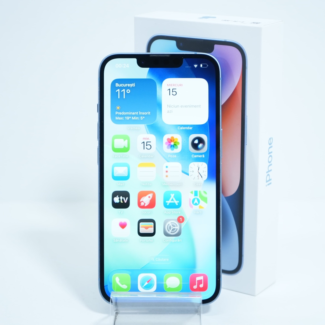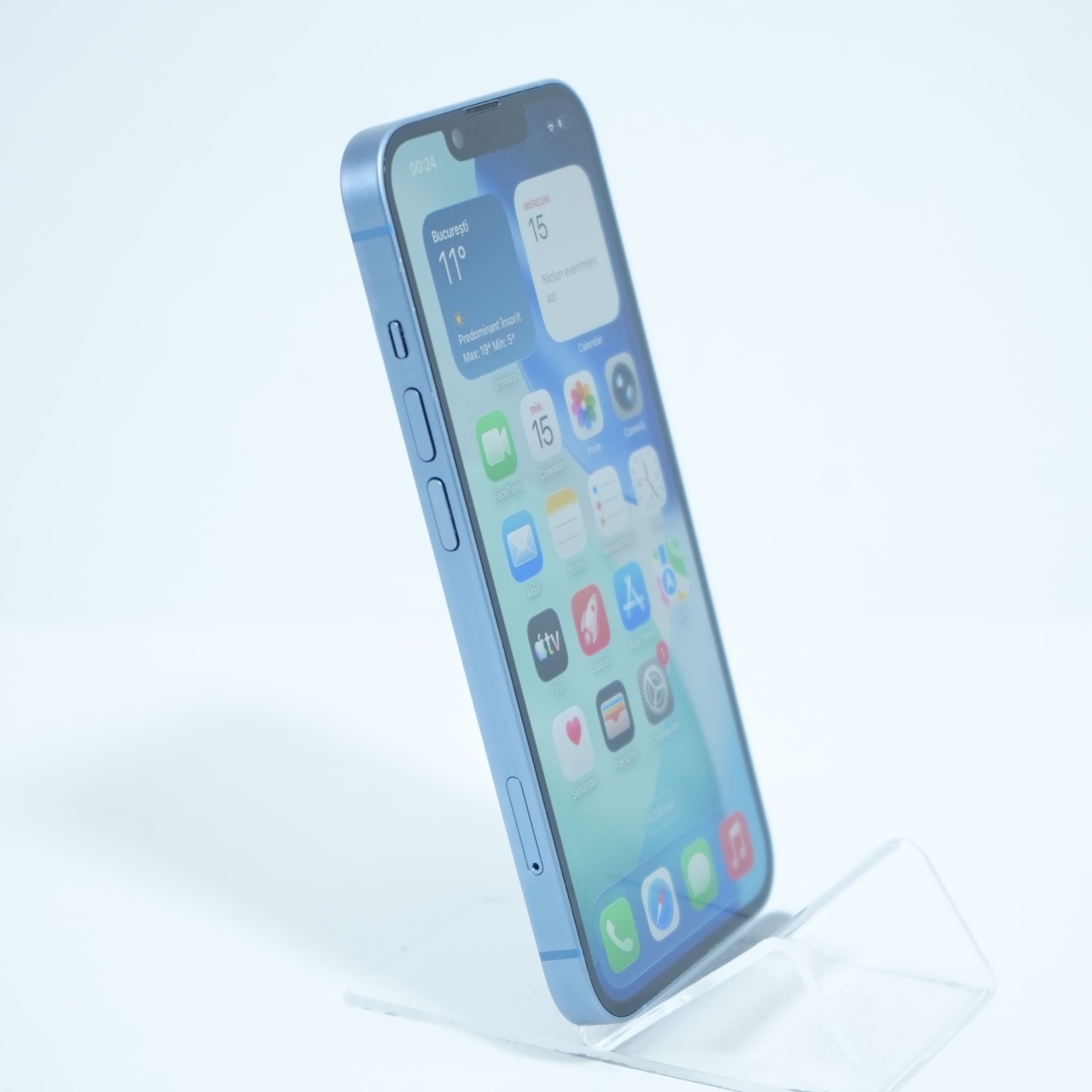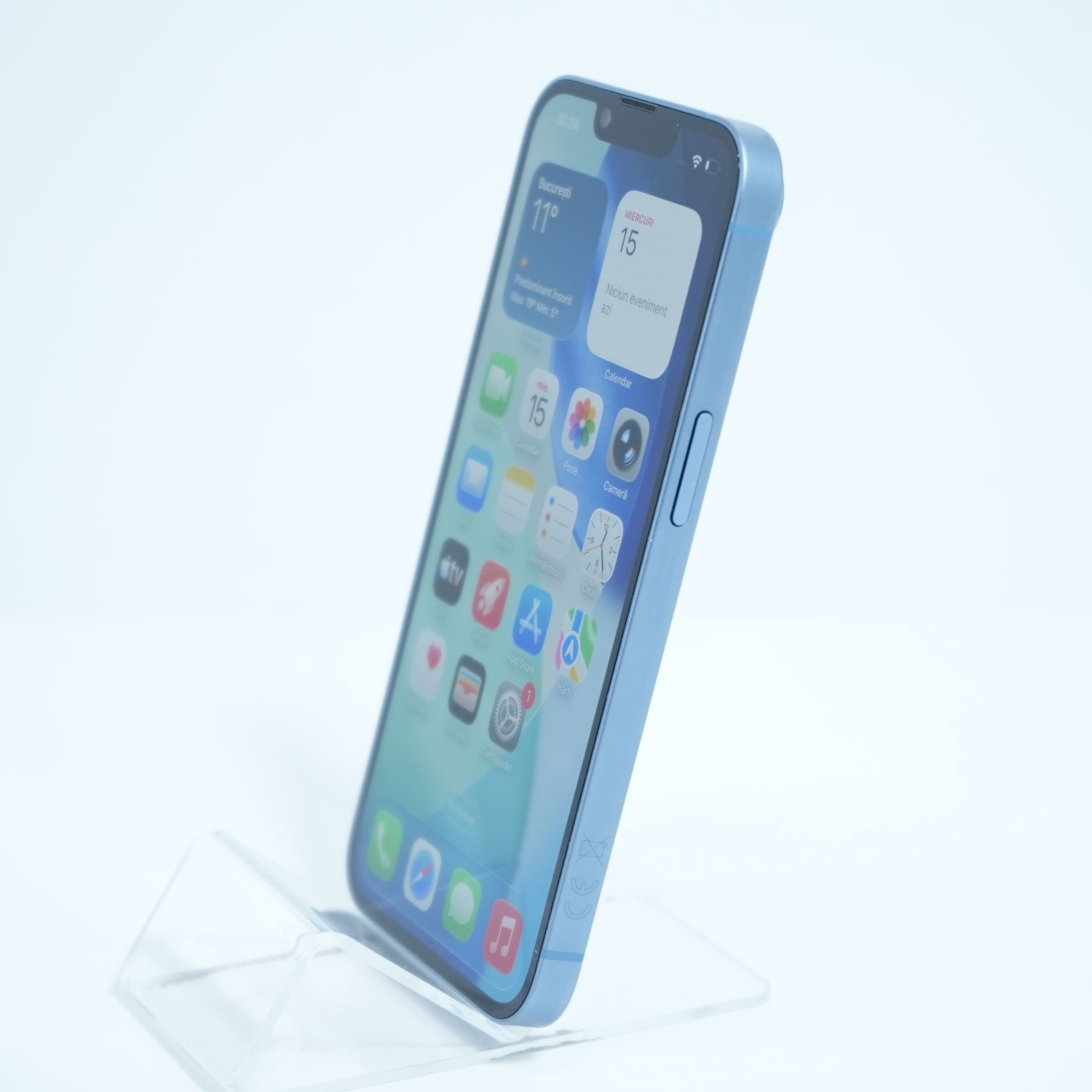 Ecran: 6.1 Procesor: Apple A15 Bionic Memorie RAM: 6GB Memorie interna: 128GB Camera foto: Principala 12 MPx, Frontala 12 MPx Stare retea: Liber de rețea