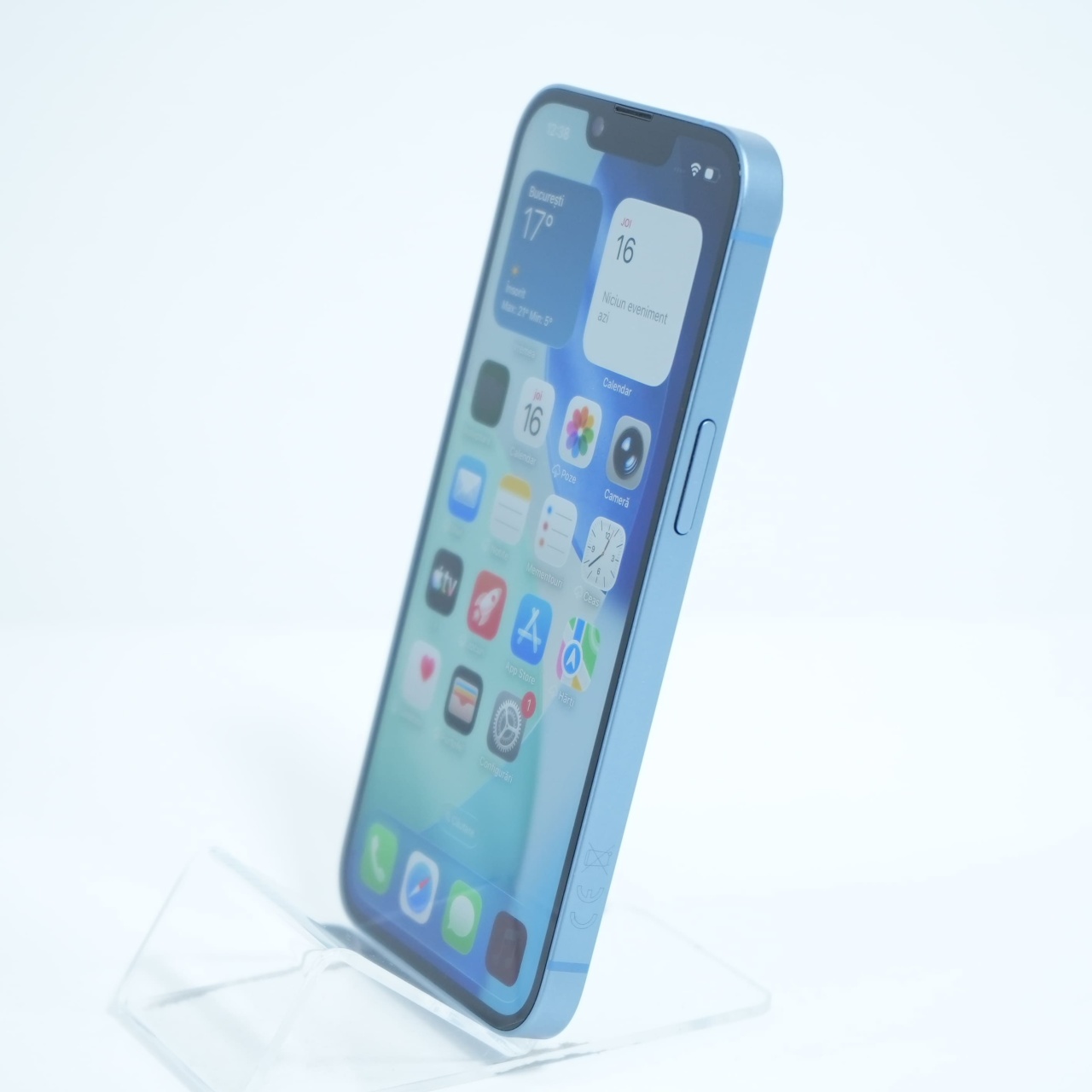 Ecran: 6.1 Procesor: Apple A15 Bionic Memorie RAM: 6 GB Memorie interna: 128GB Camera foto: Principala 12 MPx, Frontala 12 MPx Stare retea: Liber de rețea