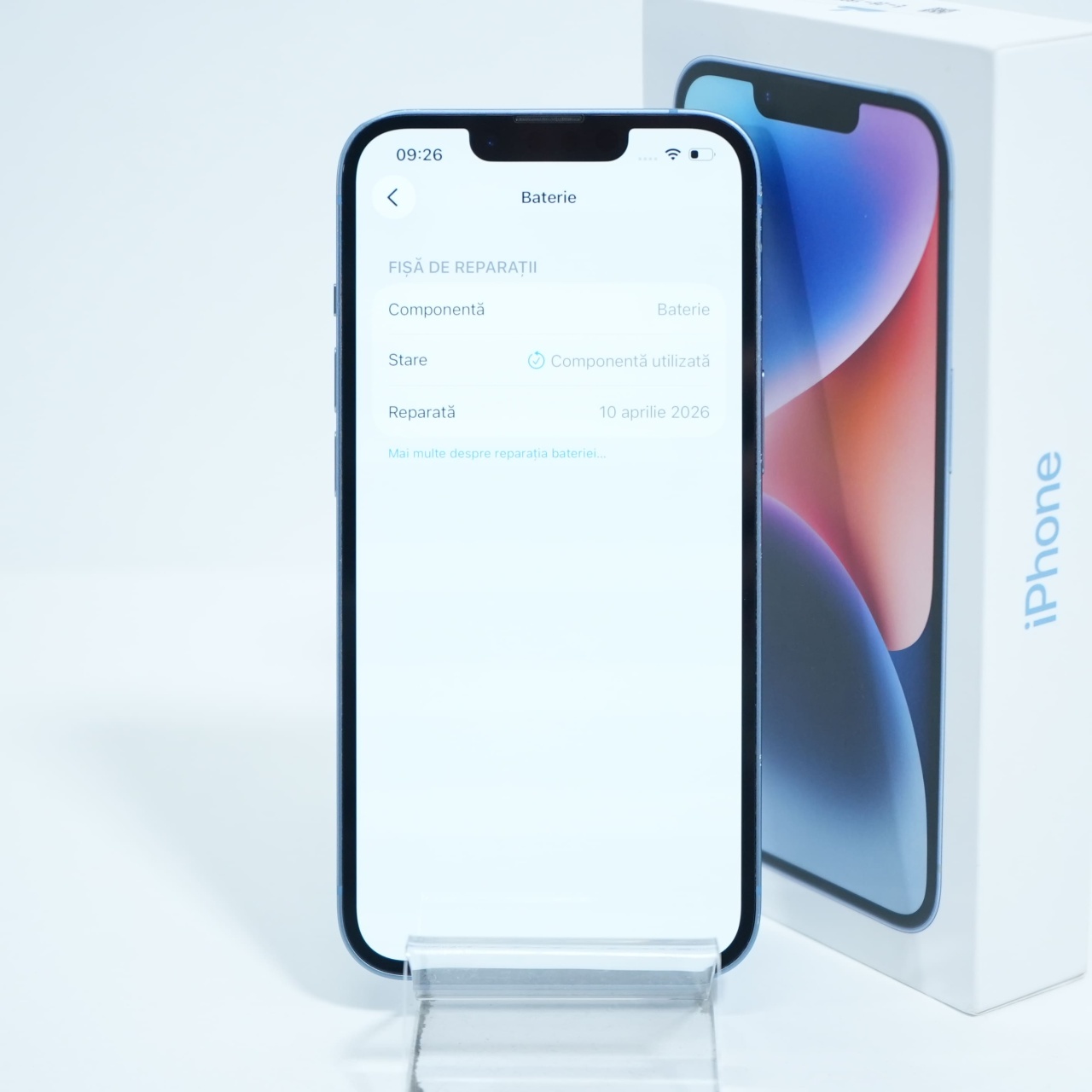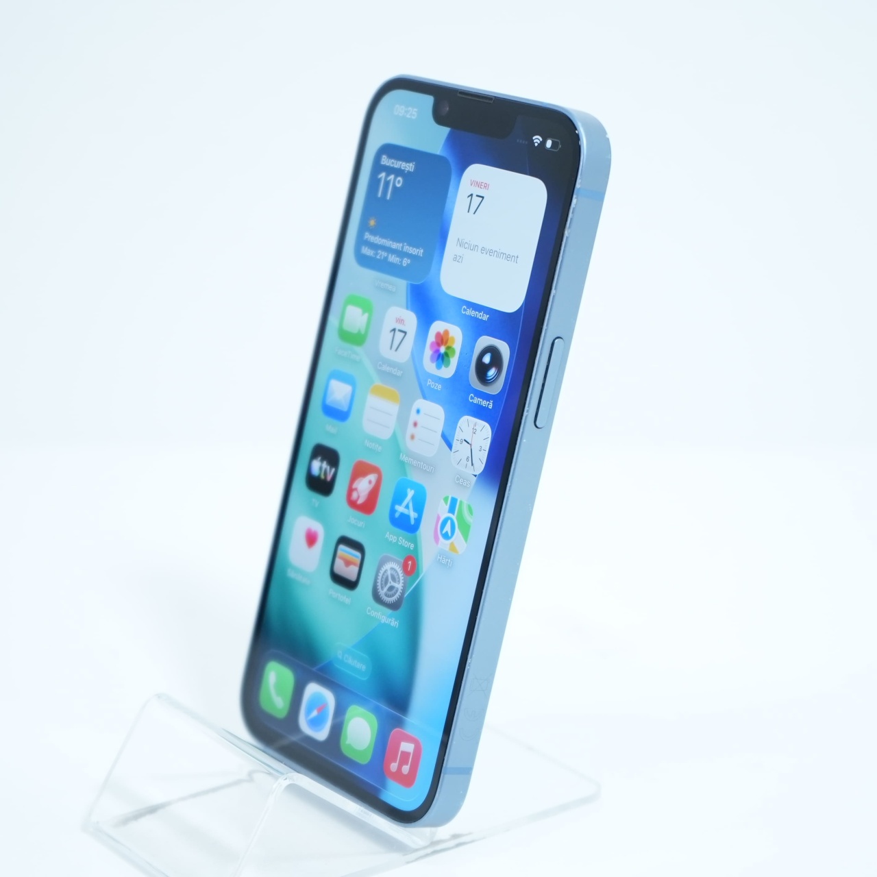 Ecran: 6.1 Procesor: Apple A15 Bionic Memorie RAM: 6 GB Memorie interna: 128GB Camera foto: Principala 12 MPx, Frontala 12 MPx Stare retea: Liber de rețea