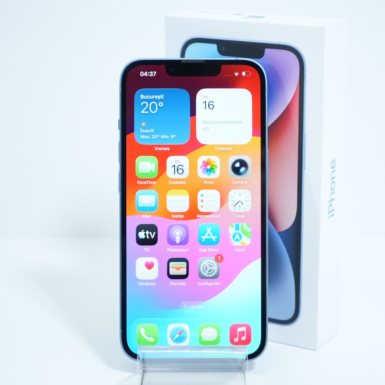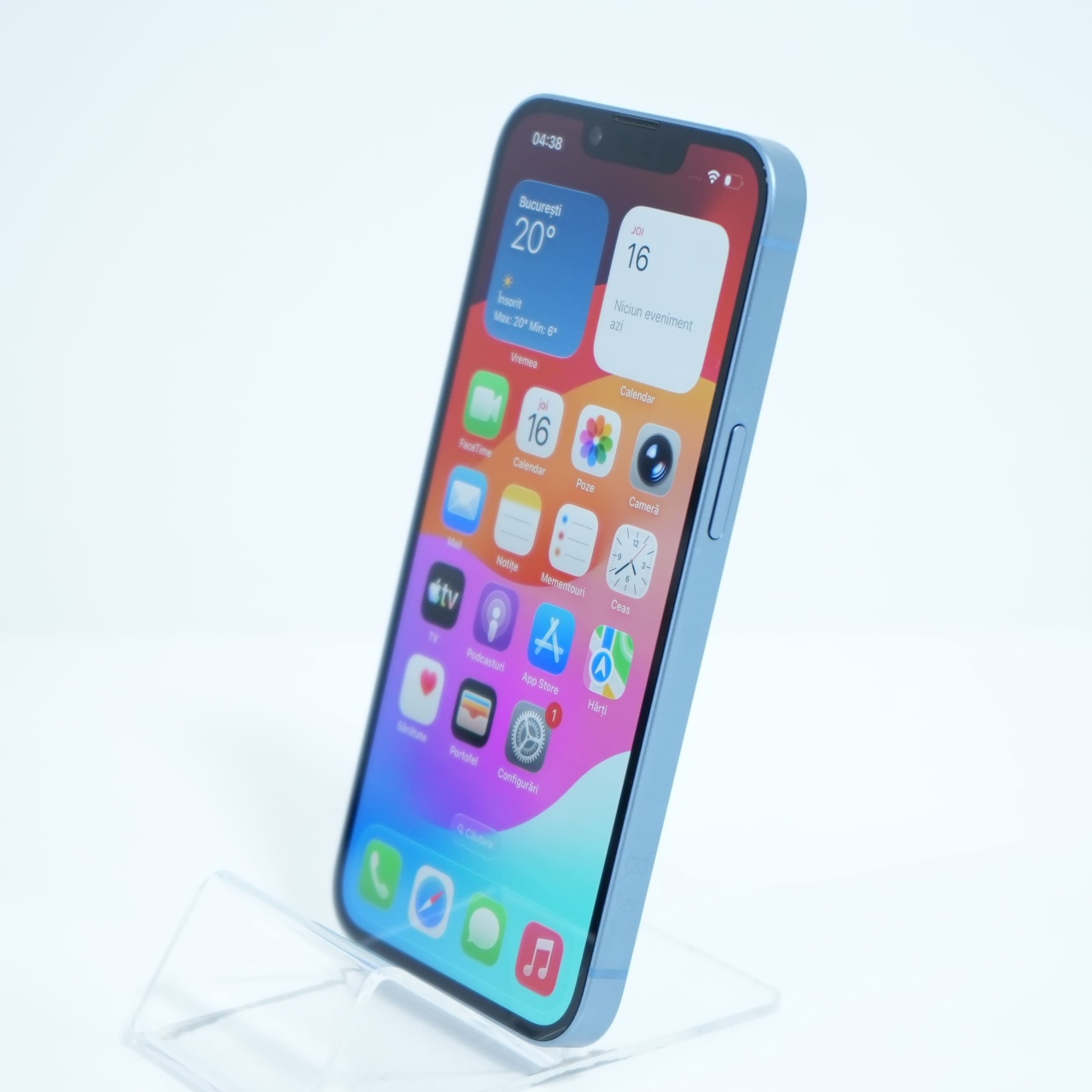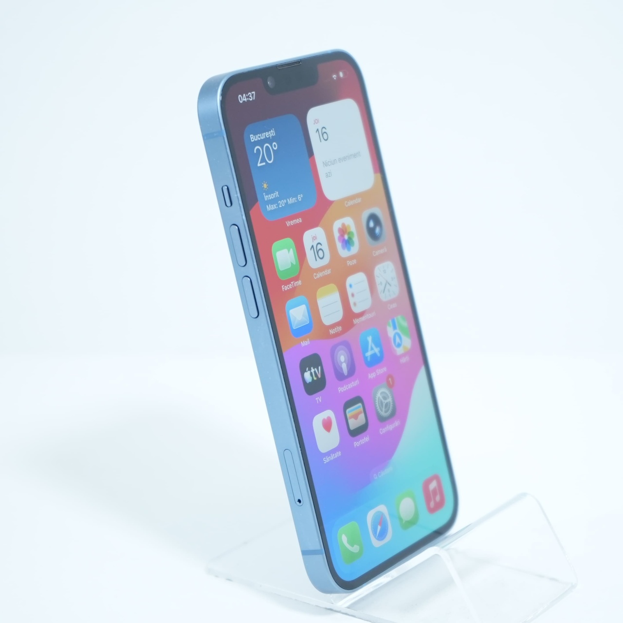 Ecran: 6.1 Procesor: Apple A15 Bionic Memorie RAM: 6 GB Memorie interna: 128GB Camera foto: Principala 12 MPx, Frontala 12 MPx Stare retea: Liber de rețea