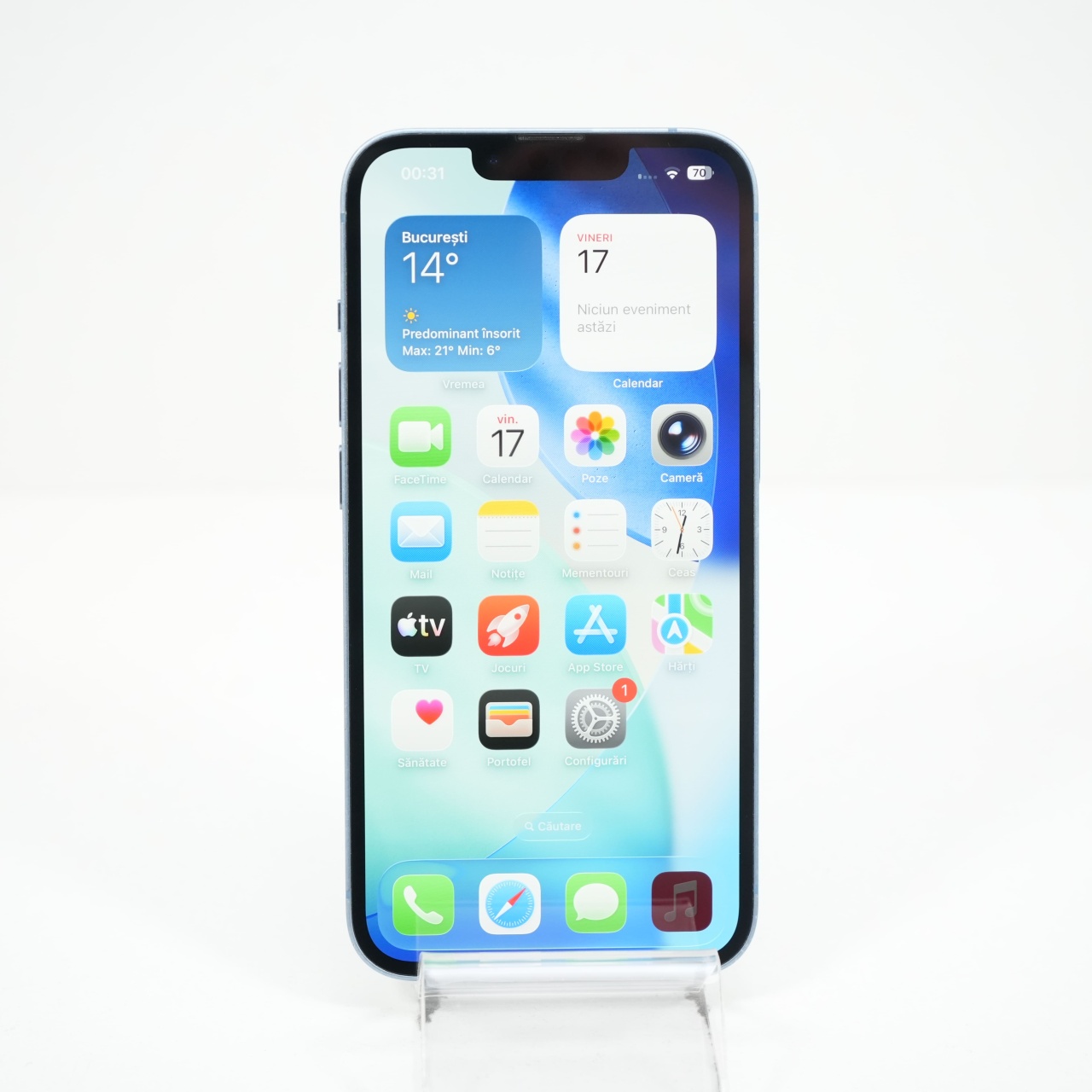Ecran: 6.1 Procesor: Apple A15 Bionic Memorie RAM: 6 GB Memorie interna: 128GB Camera foto: Principala 12 MPx, Frontala 12 MPx Stare retea: Liber de rețea