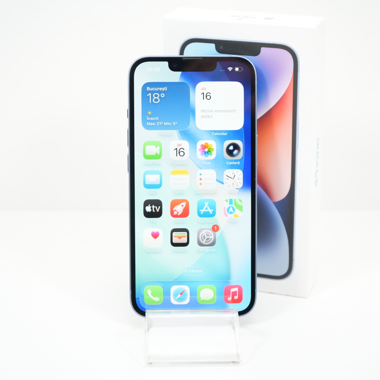 Ecran: 6.1 Procesor: Apple A15 Bionic Memorie RAM: 6 GB Memorie interna: 128GB Camera foto: Principala 12 MPx, Frontala 12 MPx Stare retea: Liber de rețea