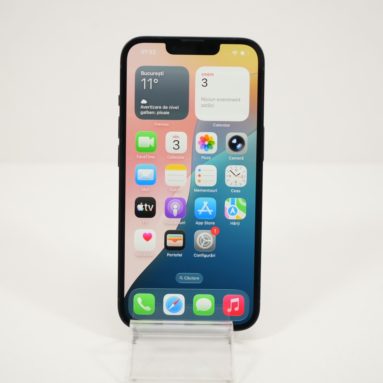Ecran: 6.1 Procesor: Apple A15 Bionic Memorie RAM: 6 GB Memorie interna: 128GB Camera foto: Principala 12 MPx, Frontala 12 MPx Stare retea: Liber de rețea