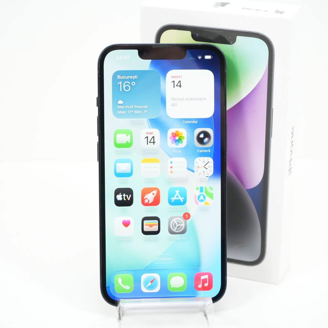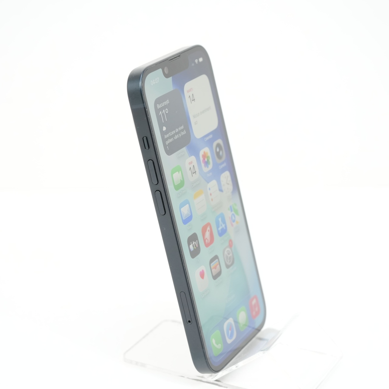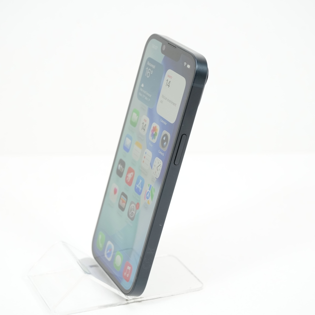 Ecran: 6.1 Procesor: Apple A15 Bionic Memorie RAM: 6 GB Memorie interna: 128GB Camera foto: Principala 12 MPx, Frontala 12 MPx Stare retea: Liber de rețea