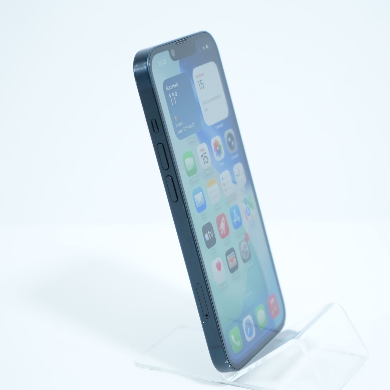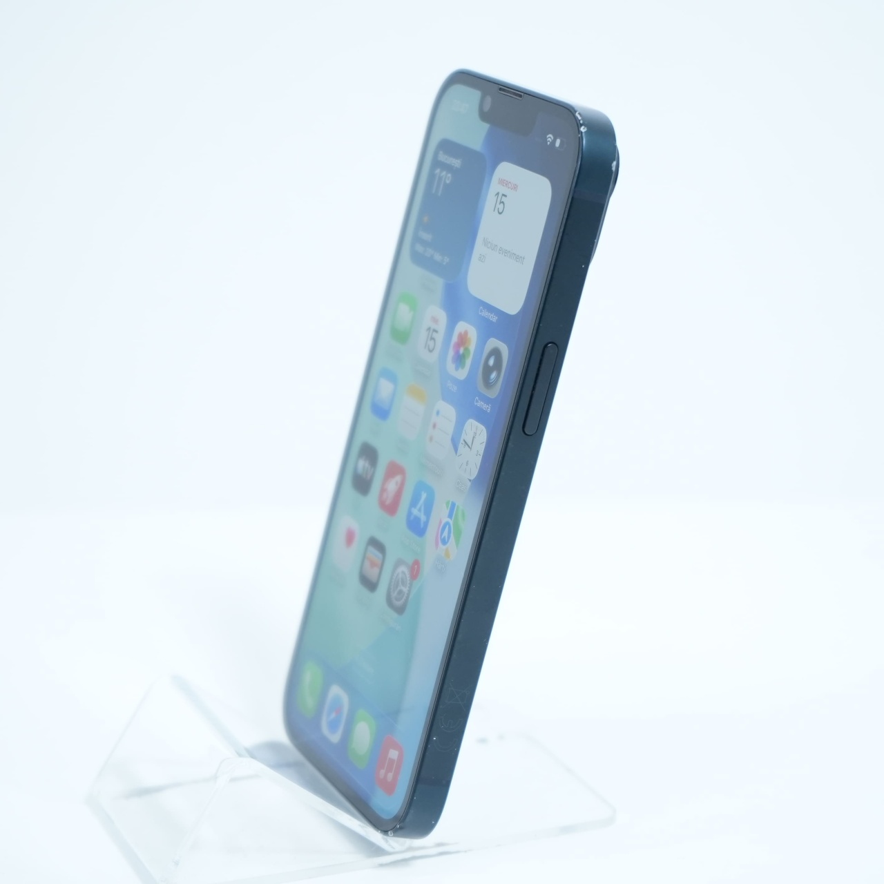 Ecran: 6.1 Procesor: Apple A15 Bionic Memorie RAM: 4GB Memorie interna: 128GB Camera foto: Principala 12 MPx, Frontala 12 MPx Stare retea: Liber de retea, Liber de rețea