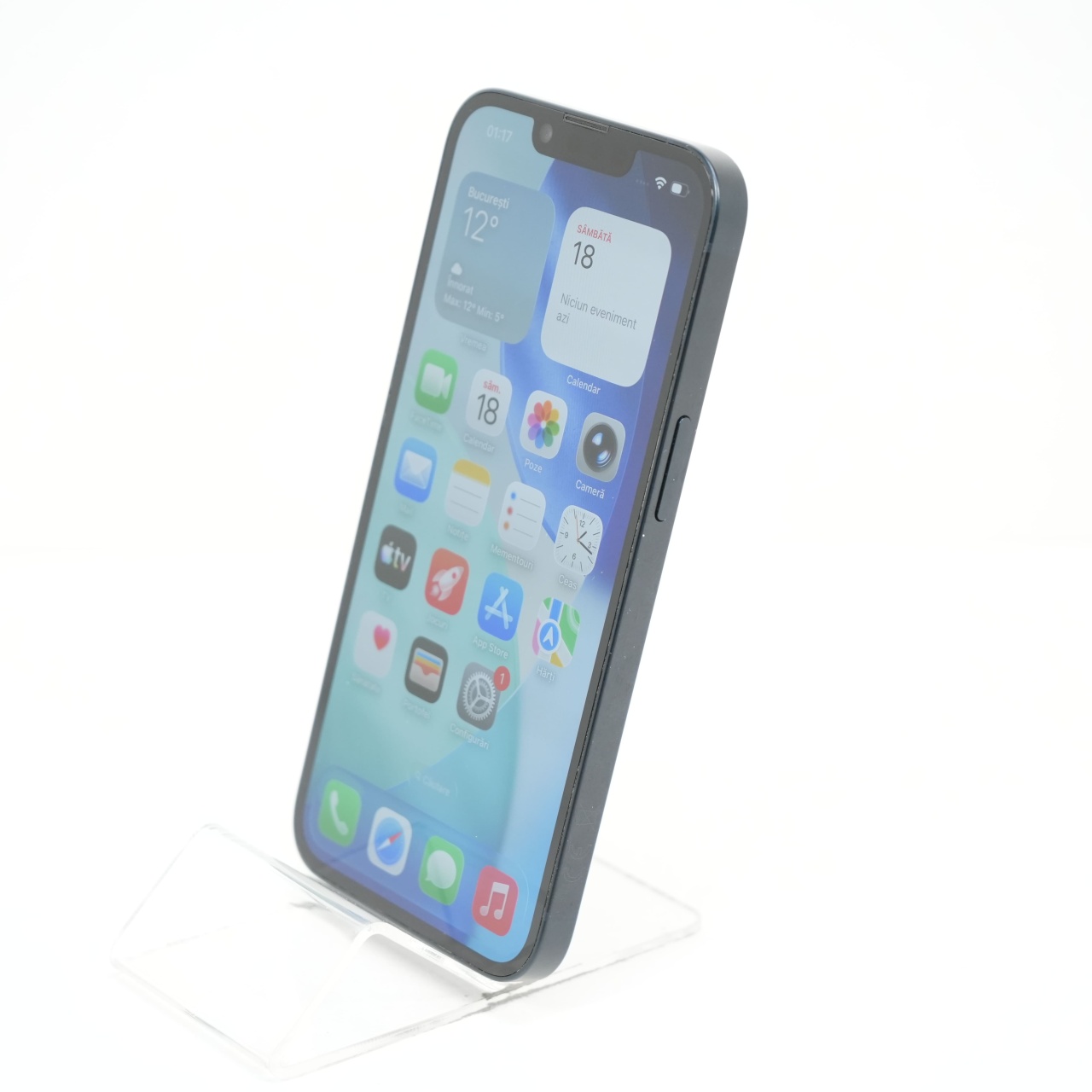 Ecran: 6.1 Procesor: Apple A15 Bionic Memorie RAM: 6 GB Memorie interna: 128GB Camera foto: Principala 12 MPx, Frontala 12 MPx Stare retea: Liber de rețea