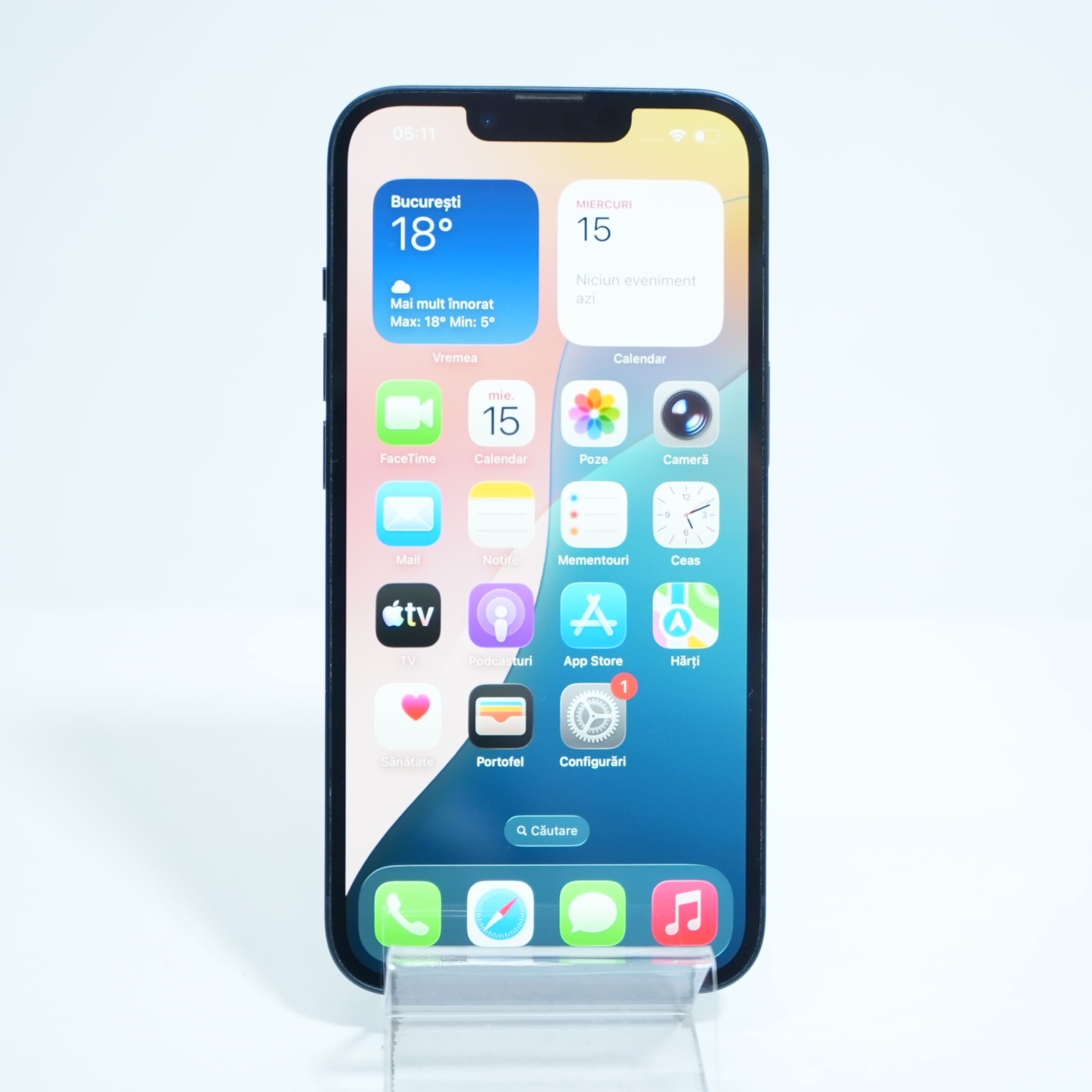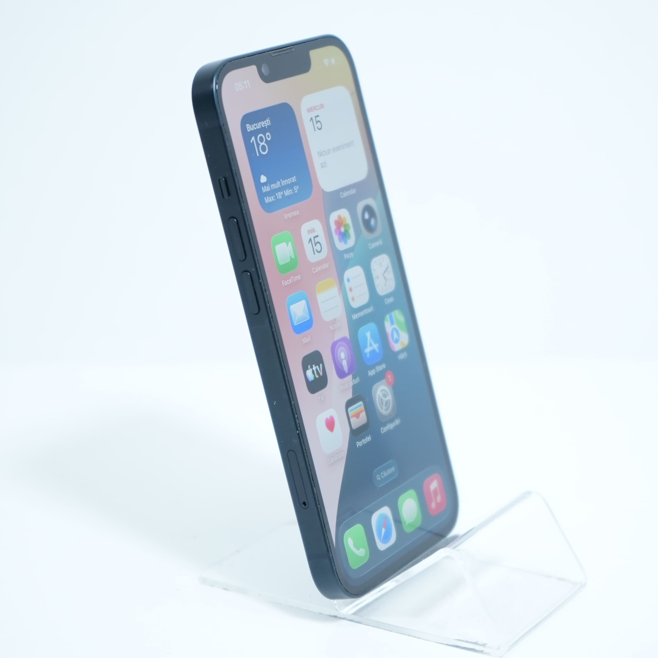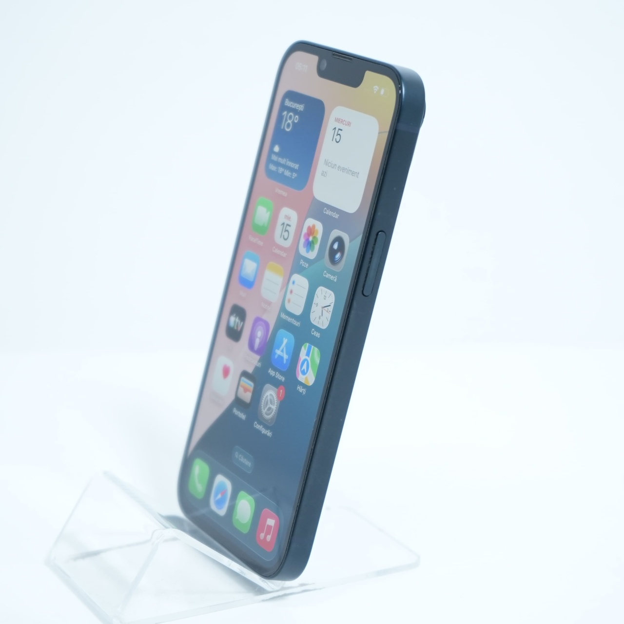 Ecran: 6.1 Procesor: Apple A15 Bionic Memorie RAM: 6 GB Memorie interna: 128GB Camera foto: Principala 12 MPx, Frontala 12 MPx Stare retea: Liber de rețea