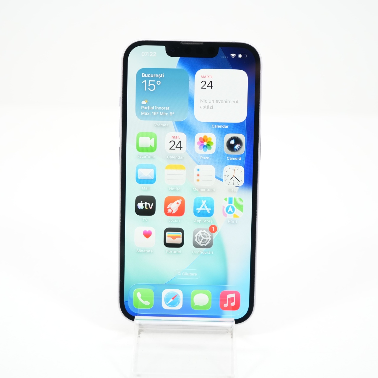 Ecran: 6.1 Procesor: Apple A15 Bionic Memorie RAM: 6GB Memorie interna: 128GB Camera foto: Principala 12 MPx, Frontala 12 MPx Stare retea: Liber de retea