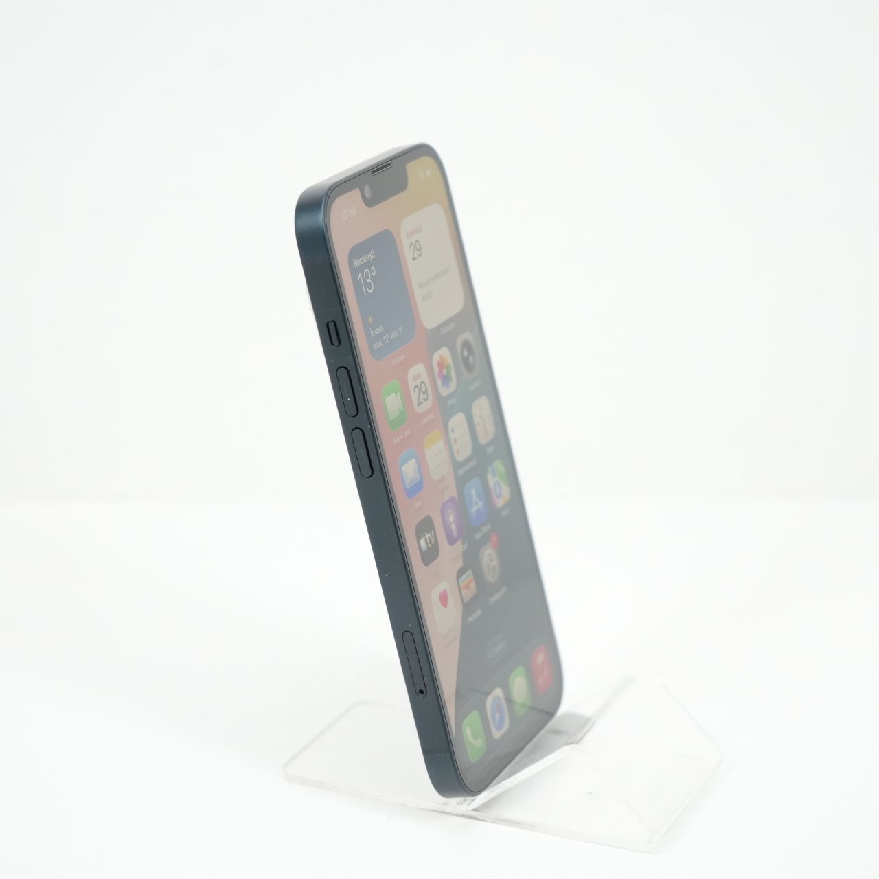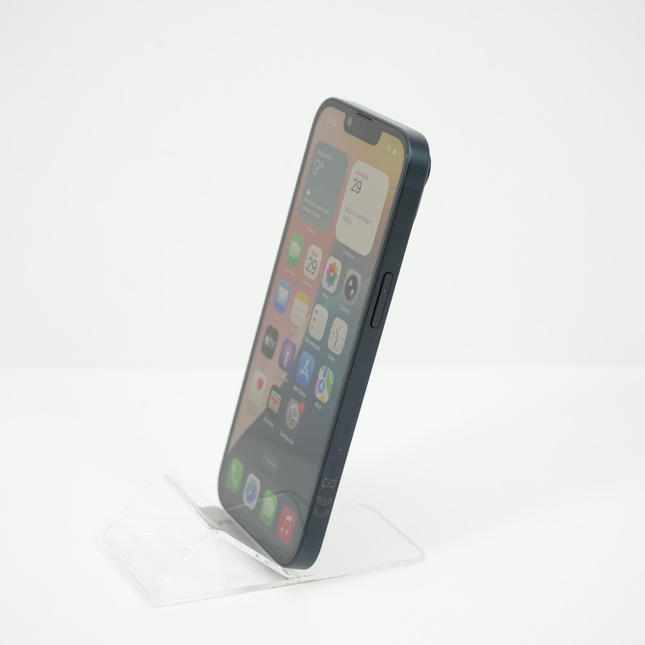 Ecran: 6.1 Procesor: Apple A15 Bionic Memorie RAM: 6 GB Memorie interna: 256GB Camera foto: Principala 12 MPx, Frontala 12 MPx Stare retea: Liber de rețea