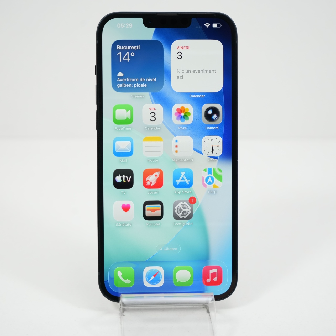 Ecran: 6.7 Procesor: Apple A15 Bionic Memorie RAM: 6 GB Memorie interna: 128GB Camera Foto: Principala 12 MPx, Frontala 12 MPx Stare retea: Liber de rețea