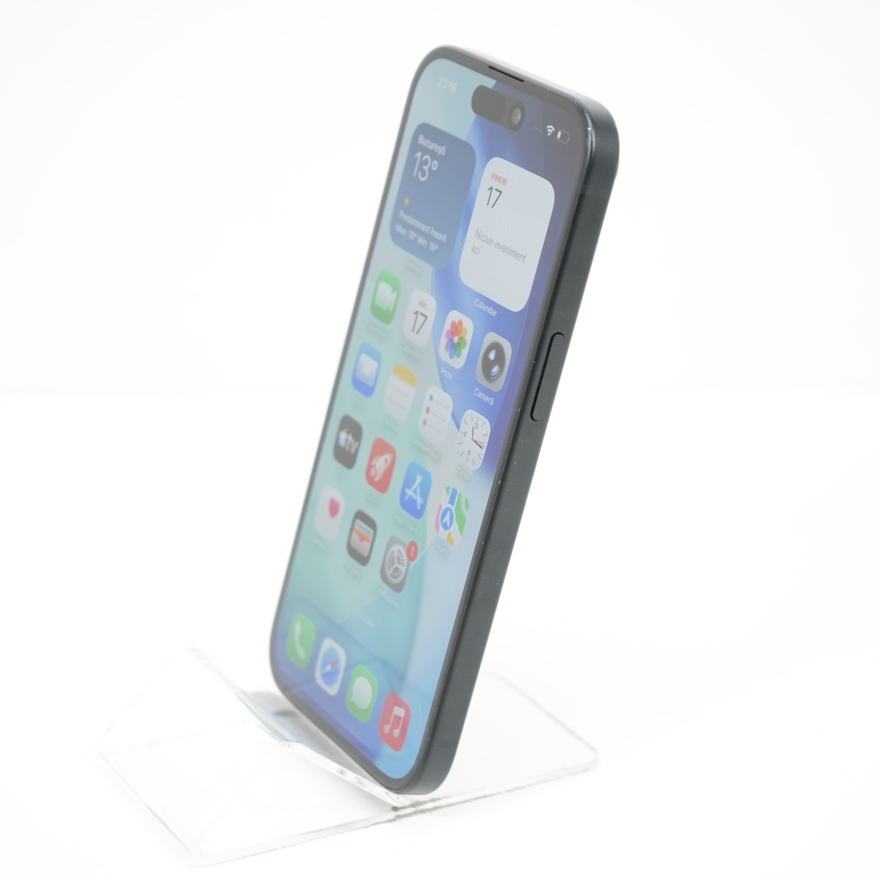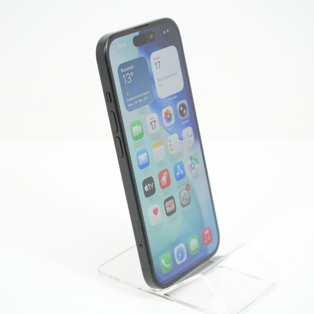 Ecran: 6.1 Procesor: Apple A16 Bionic Memorie RAM: 6 GB Memorie interna: 128GB Camera foto: Principala 48 MPx, Frontala 12 MPx Stare retea: Liber de rețea