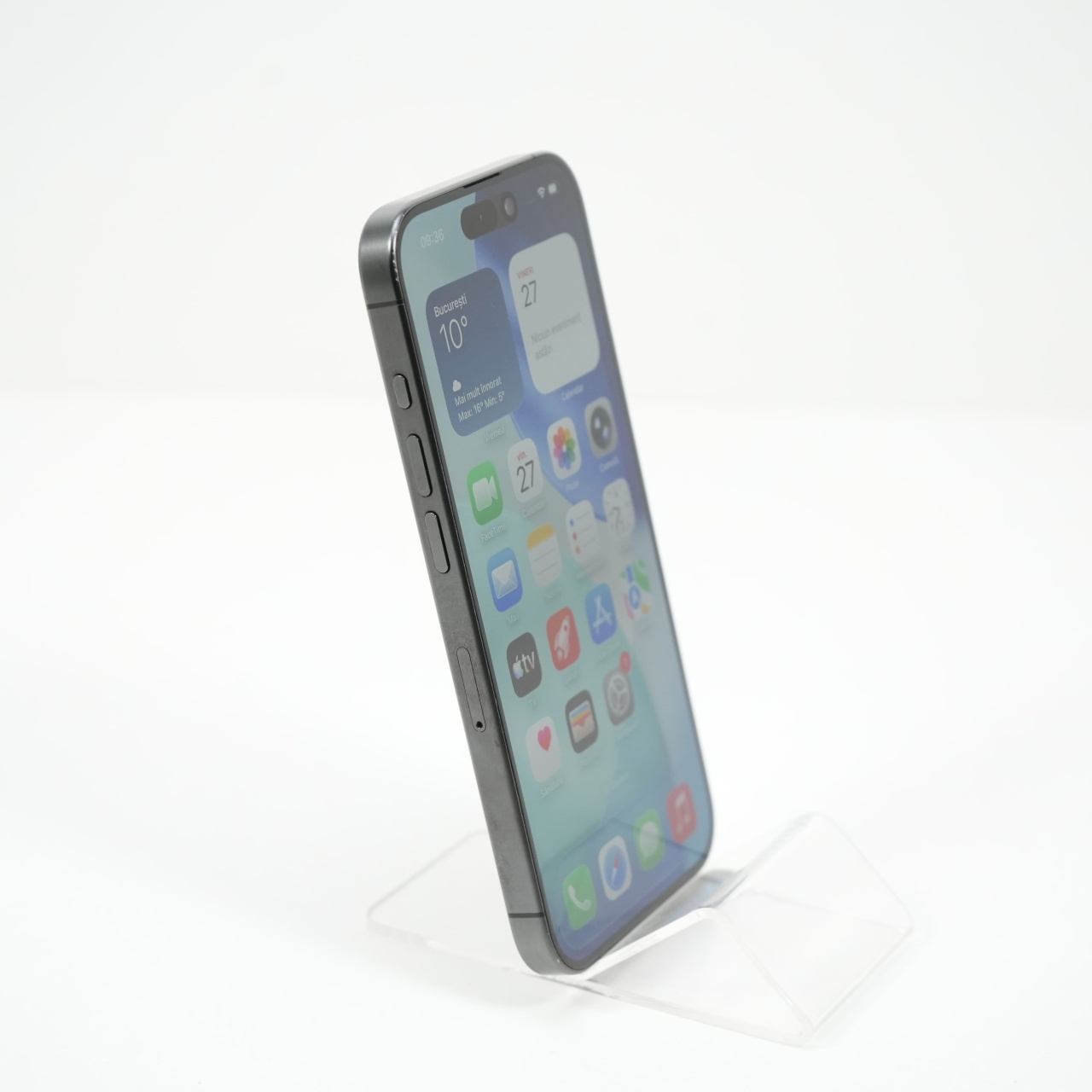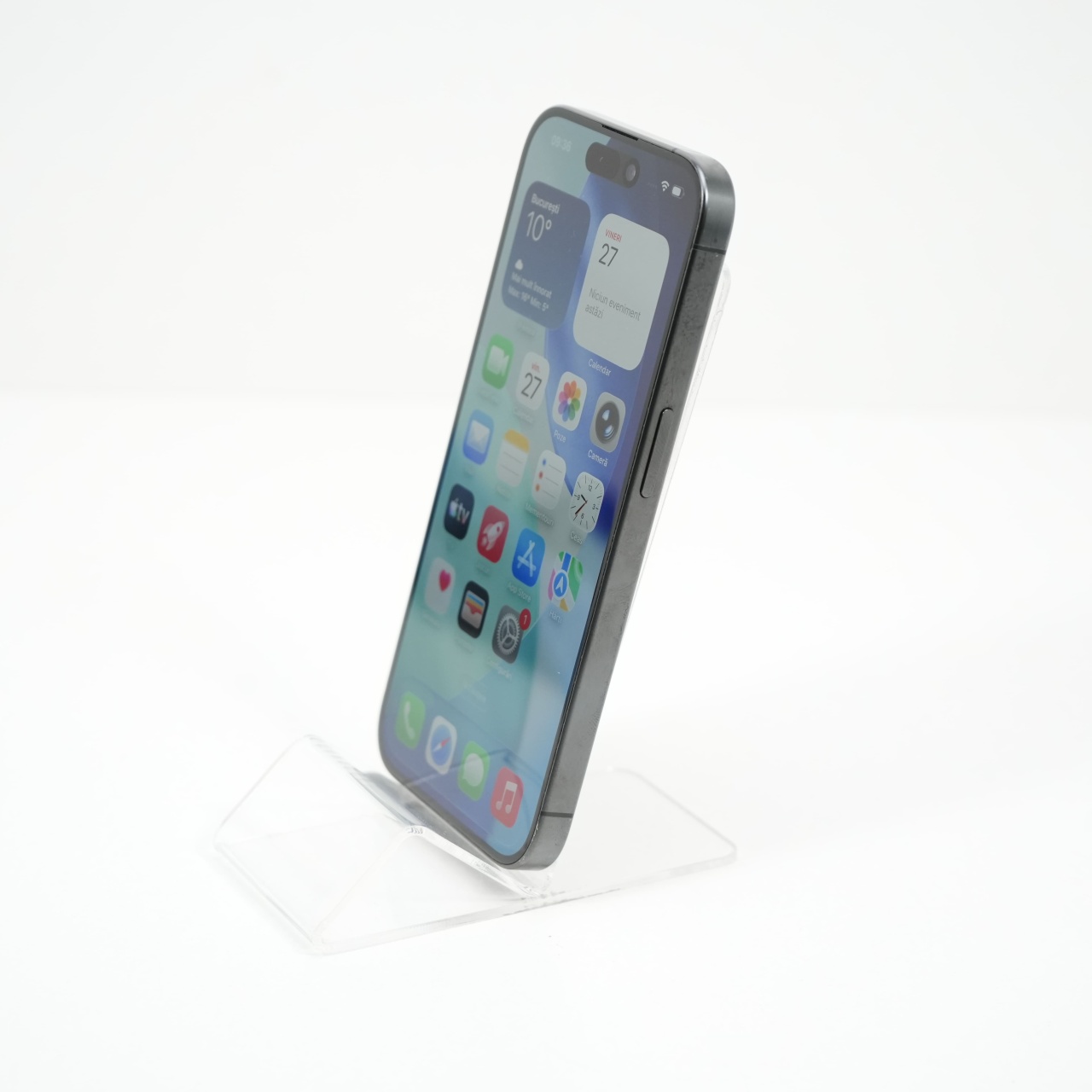 Ecran: 6.1, Refresh Rate 120 Hz Procesor: Apple A17 Pro Memorie RAM: 8GB Memorie interna: 128GB Camera Foto: Principala 48 MPx, Frontala 12 MPx Stare retea: Liber de rețea