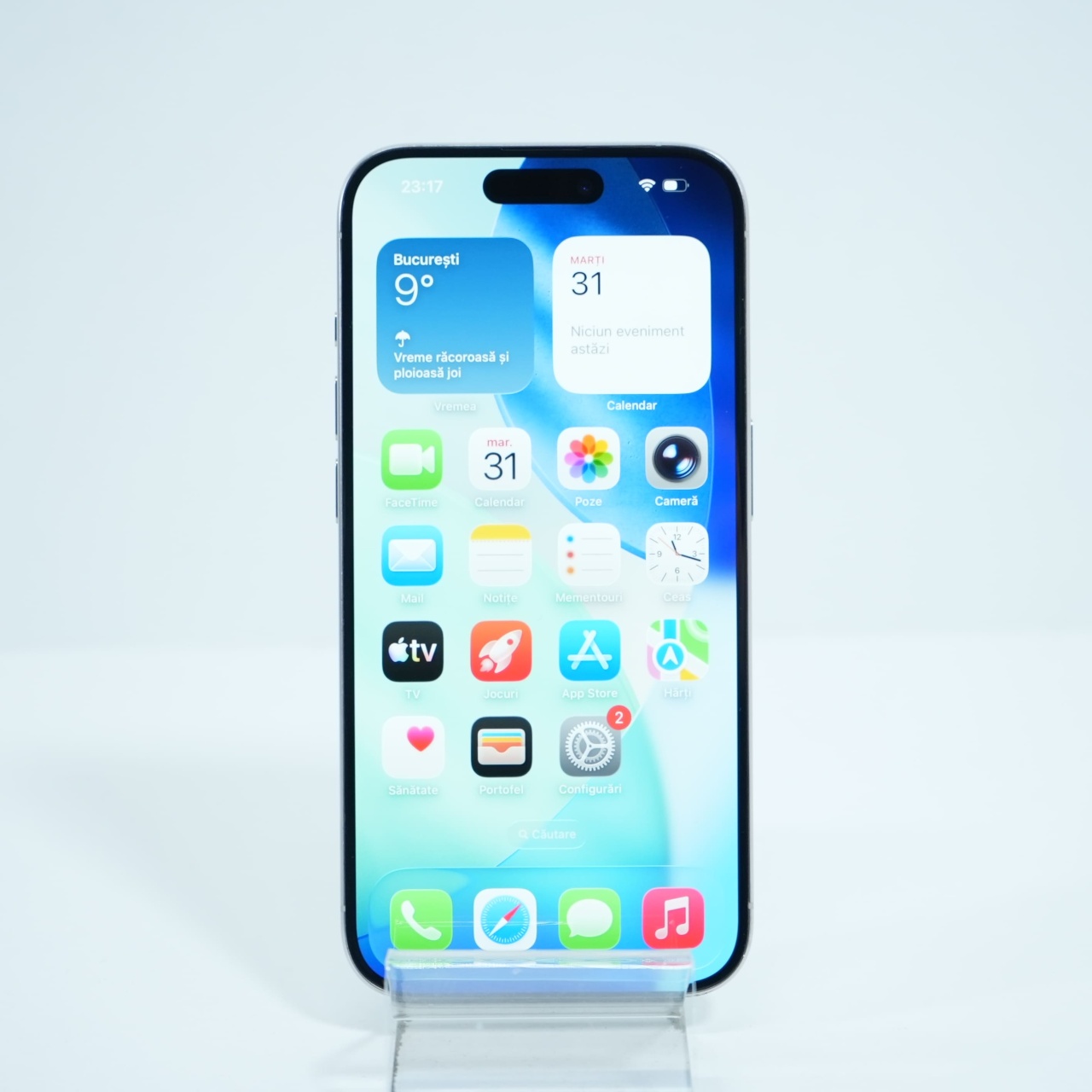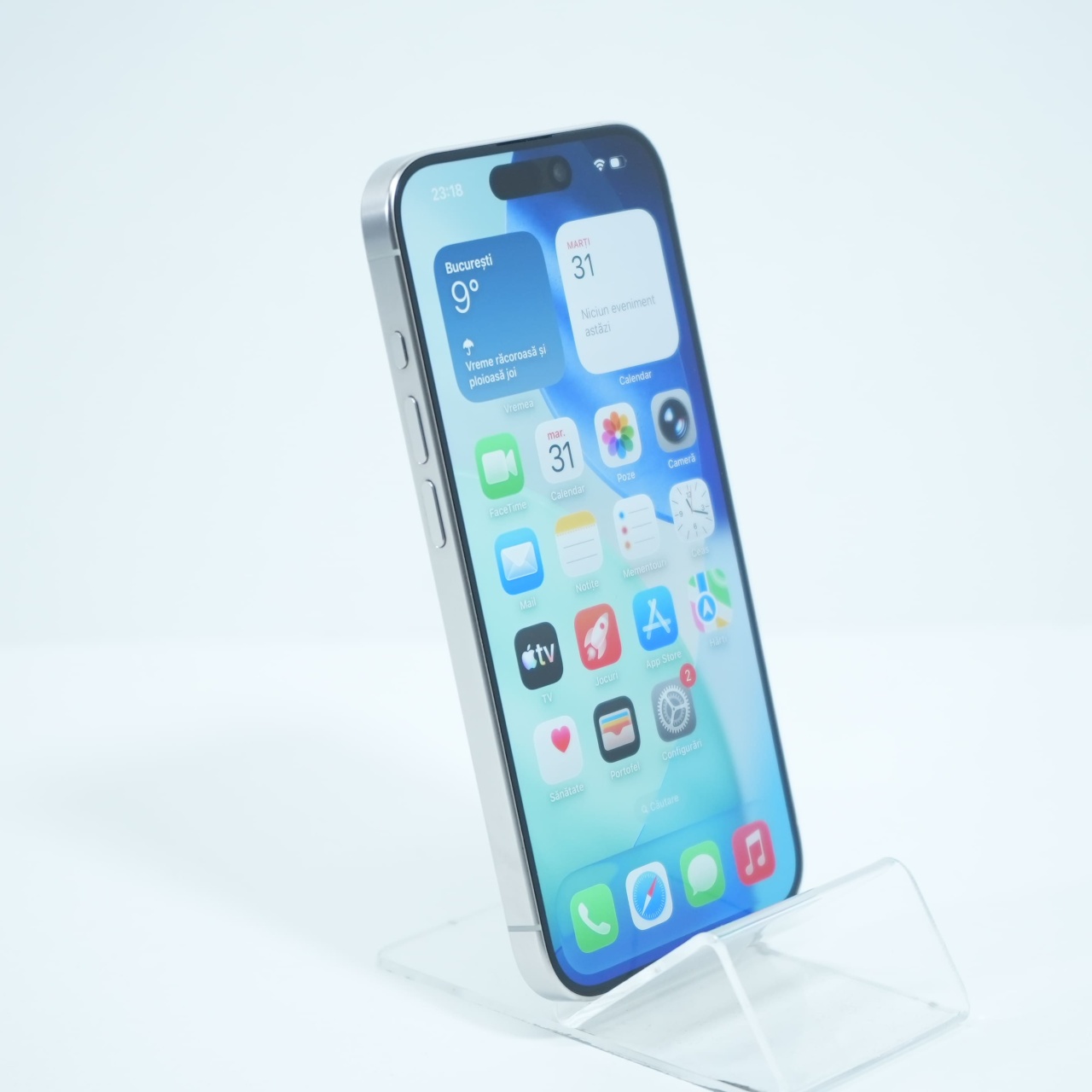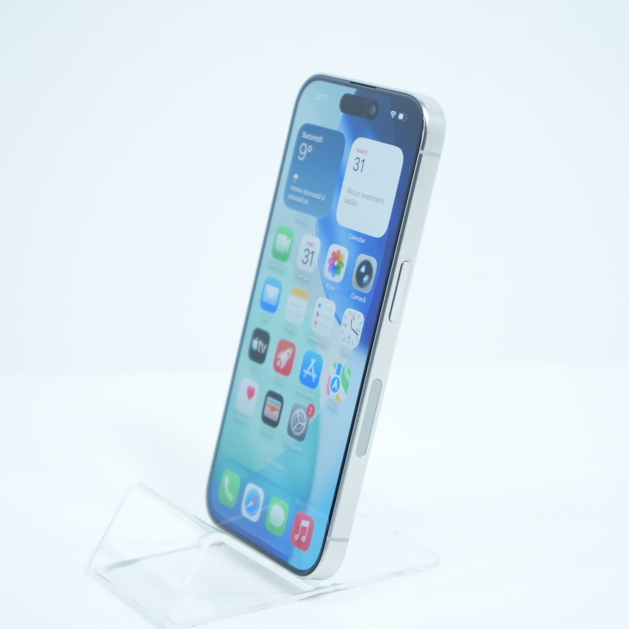 Ecran: 6.1, Refresh Rate 120 Hz Procesor: Apple A17 Pro Memorie RAM: 8 GB Memorie interna: 128GB Camera Foto: Principala 48 MPx, Frontala 12 MPx Stare retea: Liber de retea (Doar eSIM)