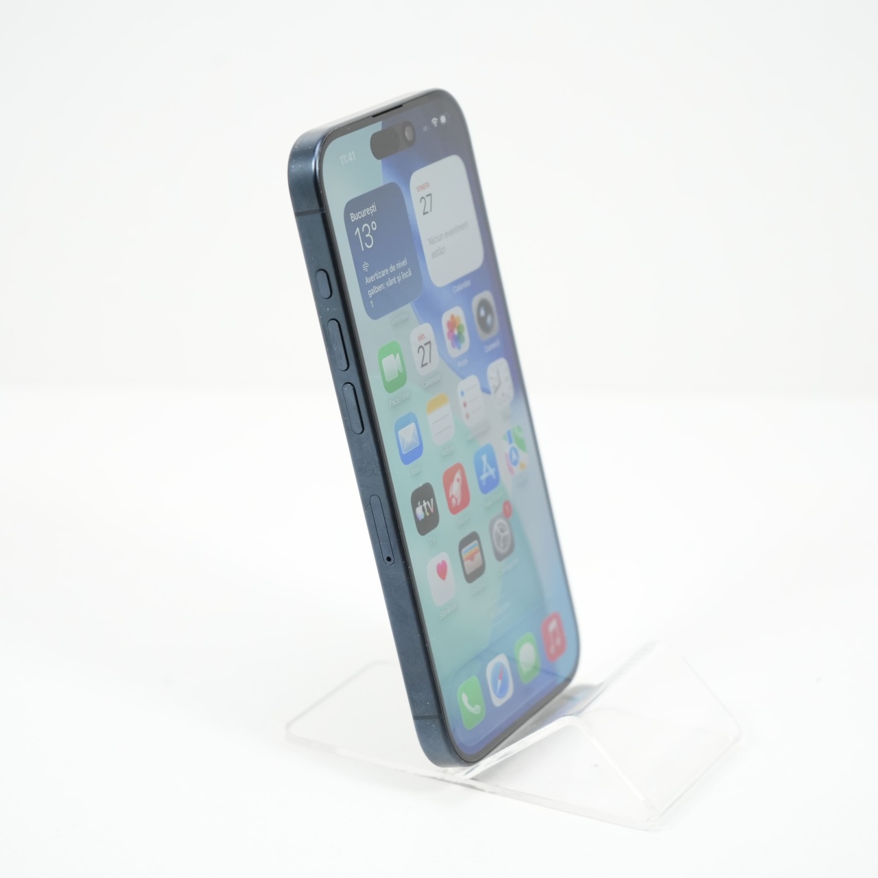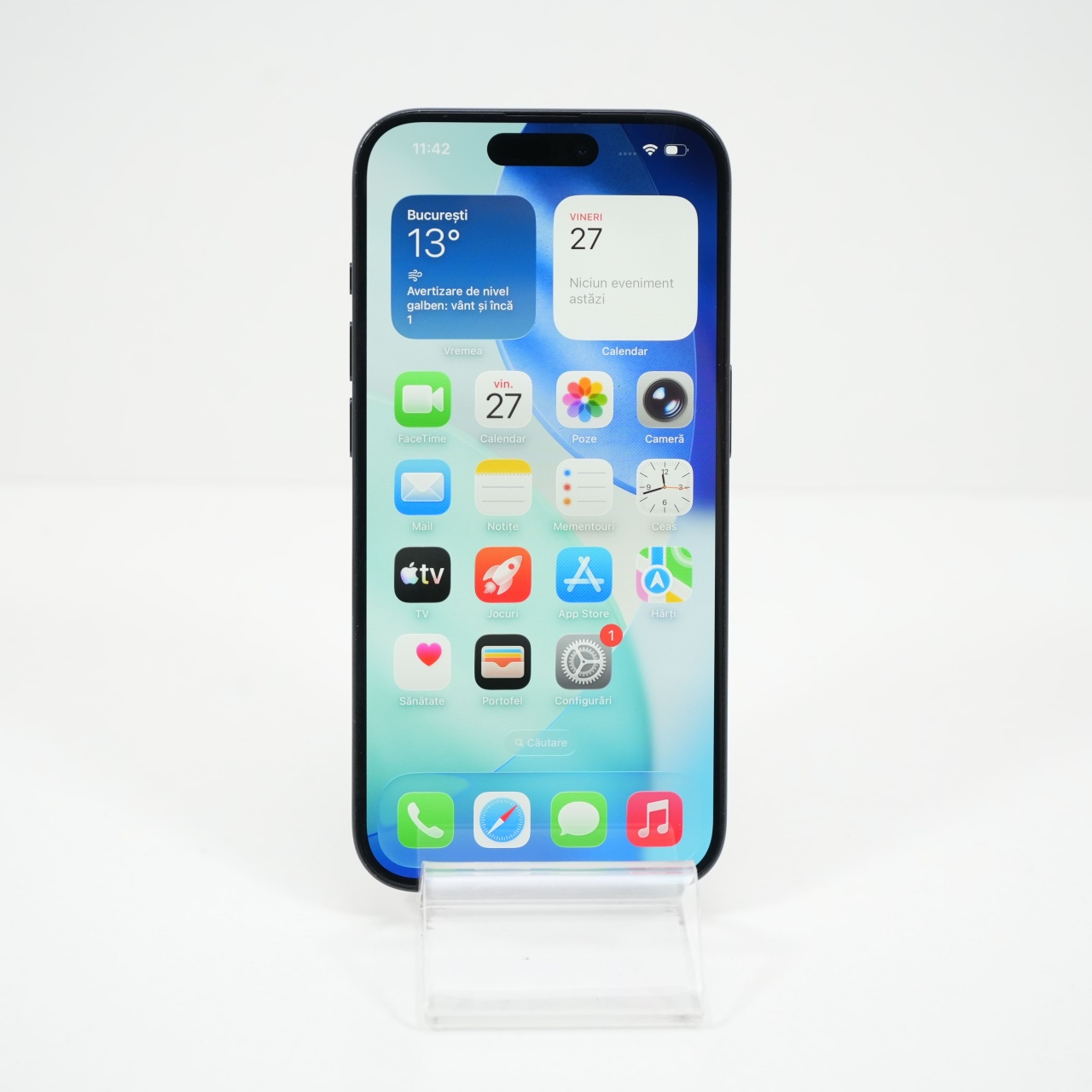 Ecran: 6.1, Refresh Rate 120 Hz Procesor: Apple A17 Pro Memorie RAM: 8GB Memorie interna: 256GB Camera Foto: Principala 48 MPx, Frontala 12 MPx Stare retea: Liber de rețea