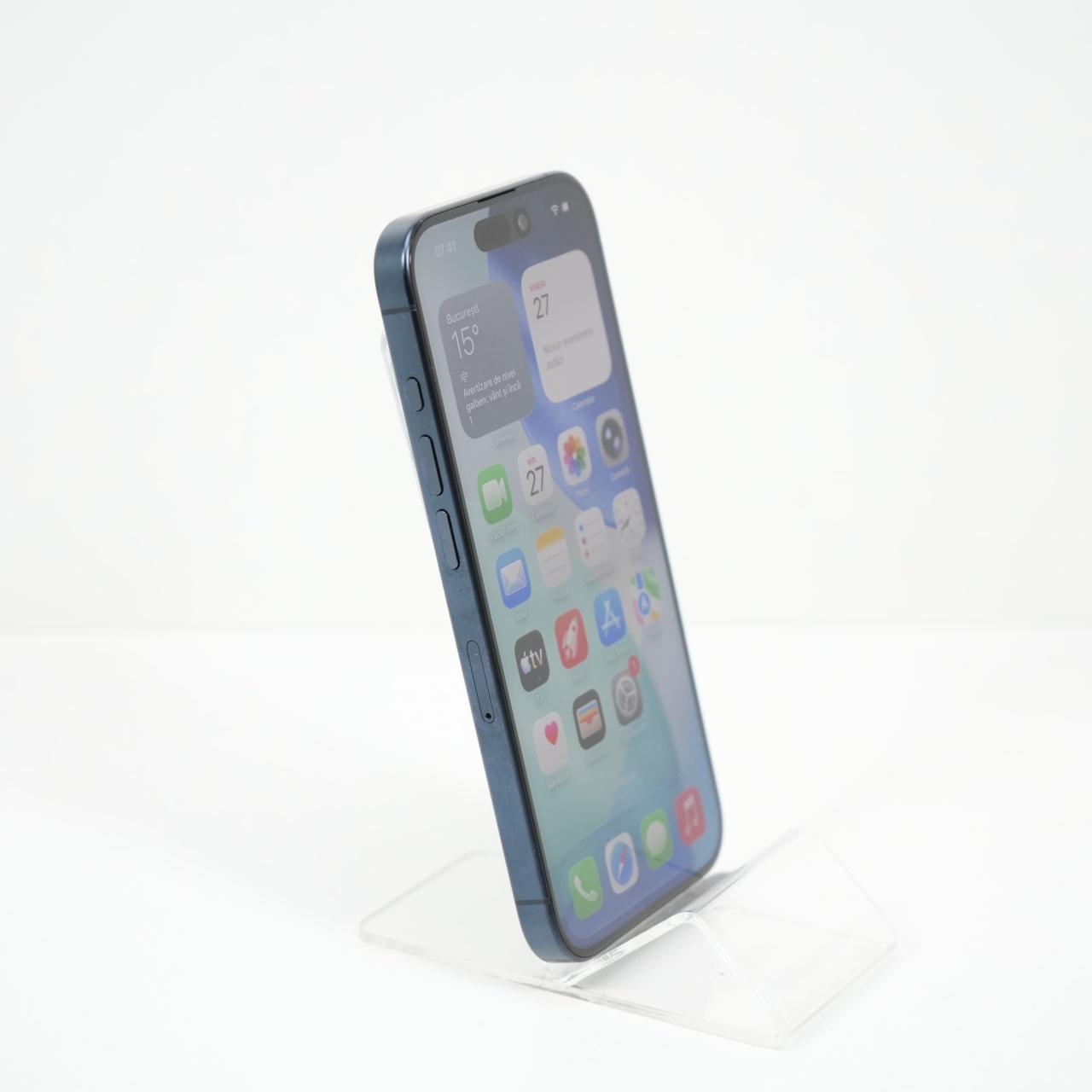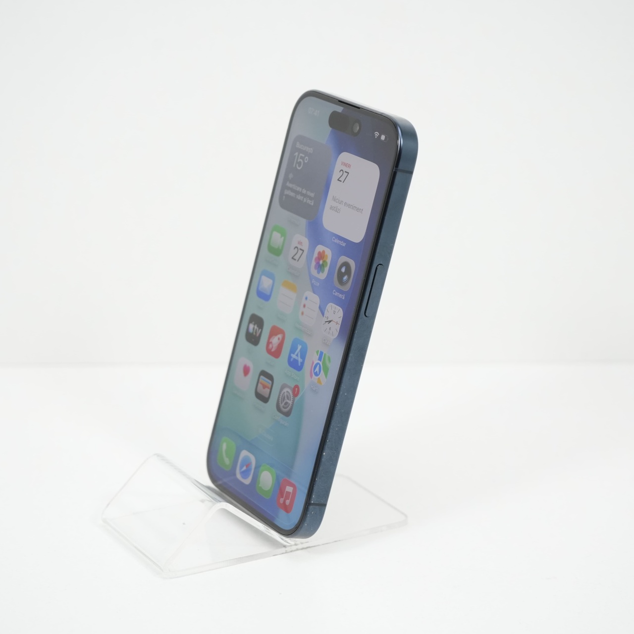 Ecran: 6.1, Refresh Rate 120 Hz Procesor: Apple A17 Pro Memorie RAM: 8 GB Memorie interna: 256GB Camera Foto: Principala 48 MPx, Frontala 12 MPx Stare retea: Liber de rețea