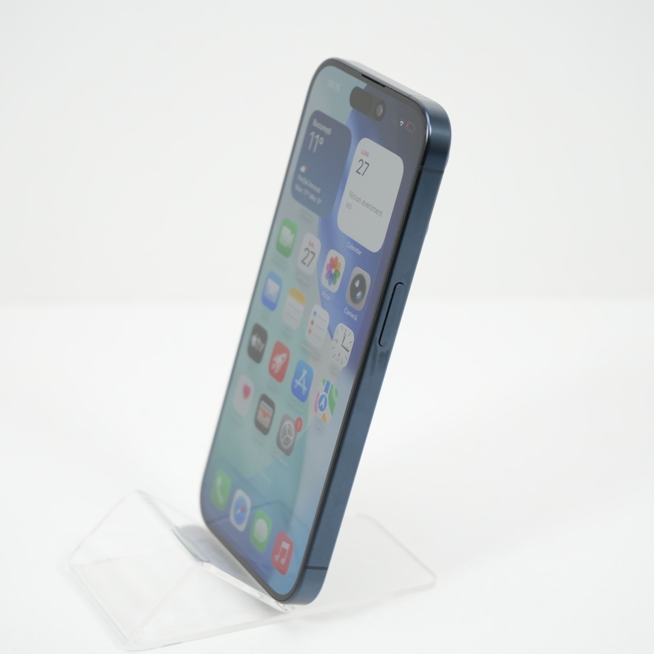 Ecran: 6.1, Refresh Rate 120 Hz Procesor: Apple A17 Pro Memorie RAM: 8 GB Memorie interna: 256GB Camera Foto: Principala 48 MPx, Frontala 12 MPx Stare retea: Liber de rețea