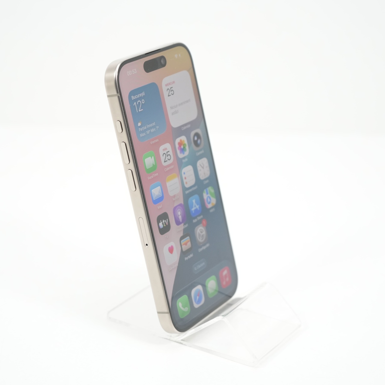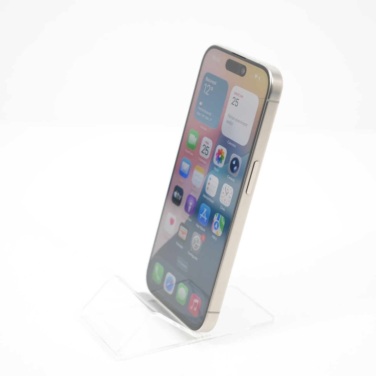 Ecran: 6.1, Refresh Rate 120 Hz Procesor: Apple A17 Pro Memorie RAM: 8 GB Memorie interna: 256GB Camera Foto: Principala 48 MPx, Frontala 12 MPx Stare retea: Liber de rețea