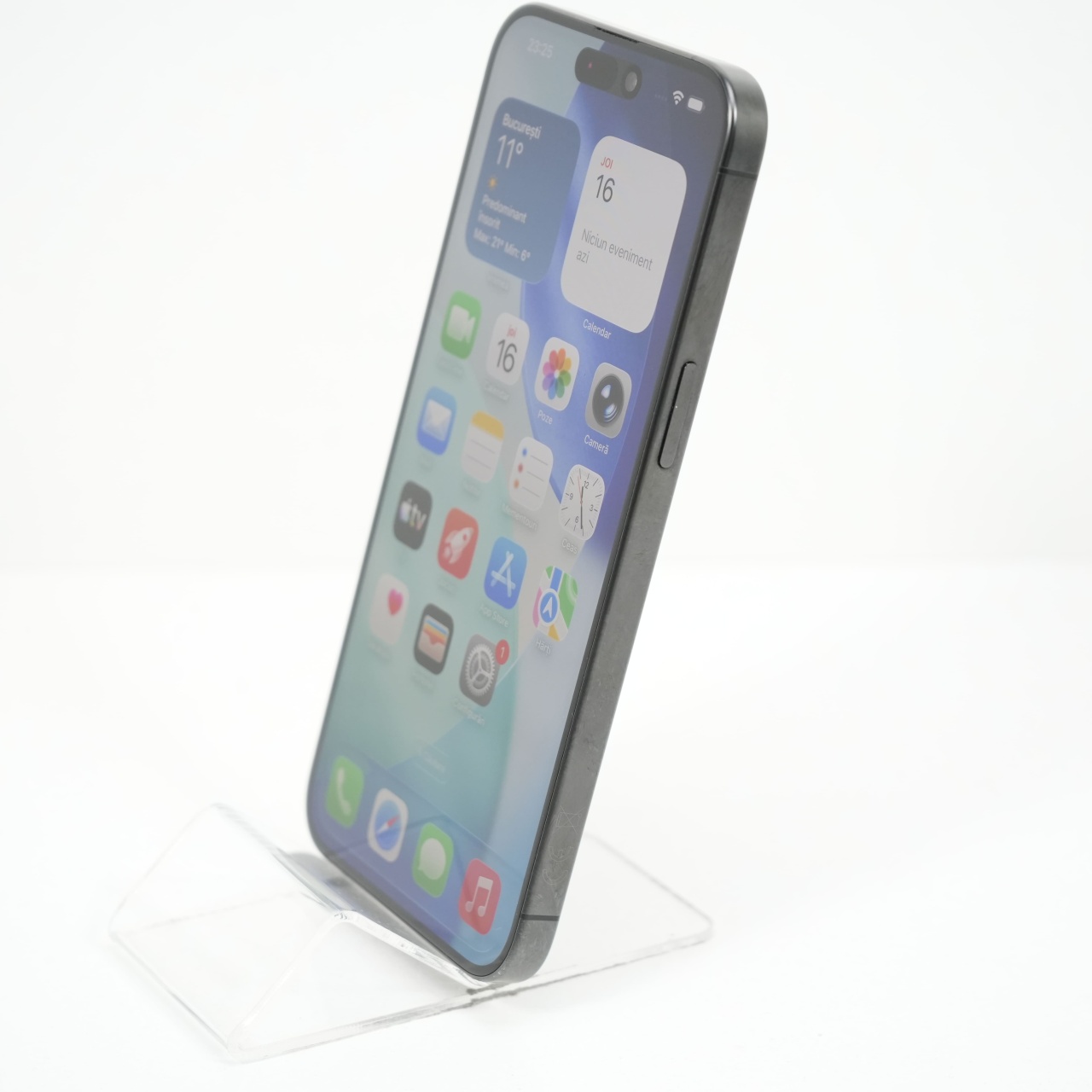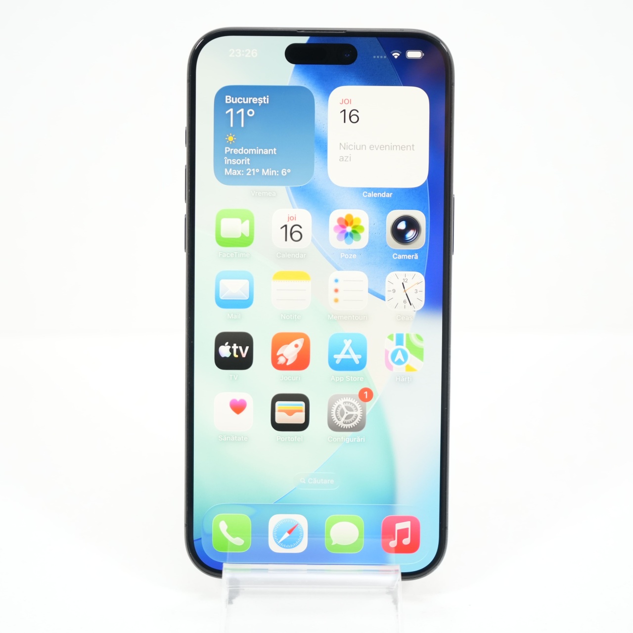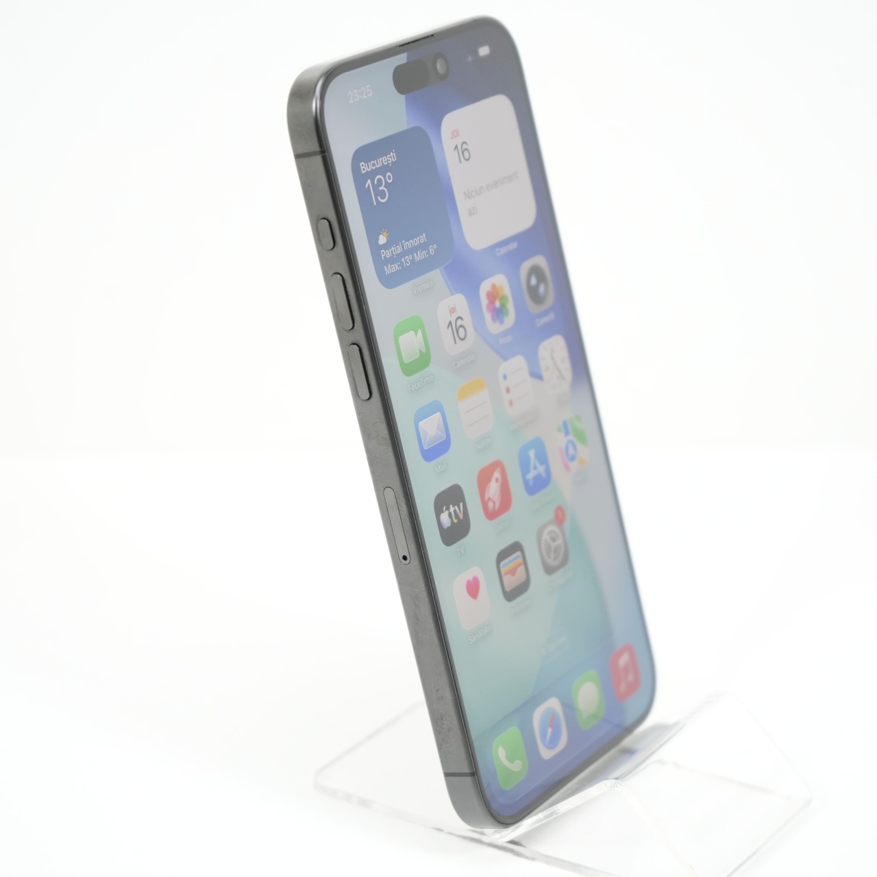 Ecran: 6.7, Refresh Rate 120 Hz Procesor: Apple A17 Pro Memorie RAM: 8GB Memorie interna: 256GB Camera foto: Principala 48 MPx, Frontala 12 MPx Stare retea: Liber de retea