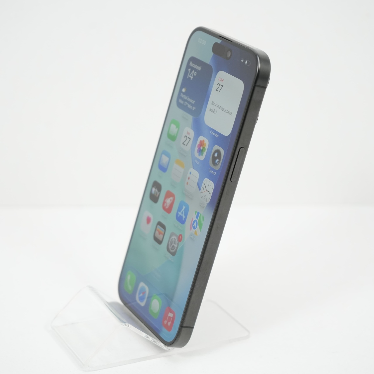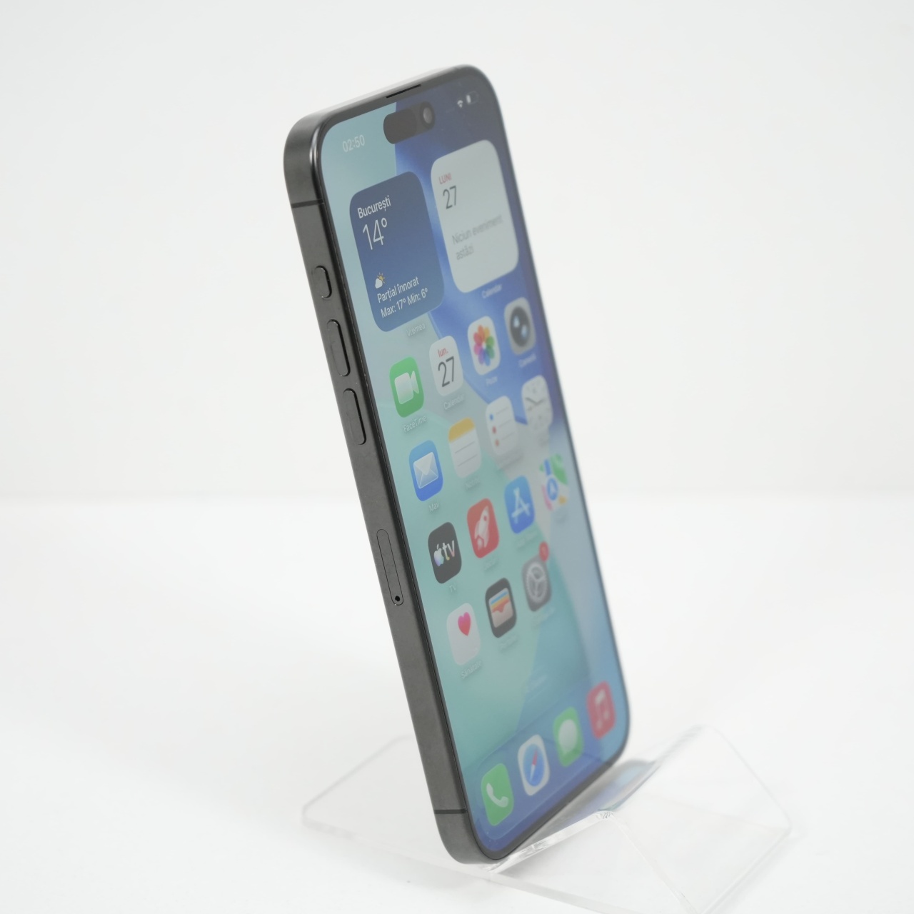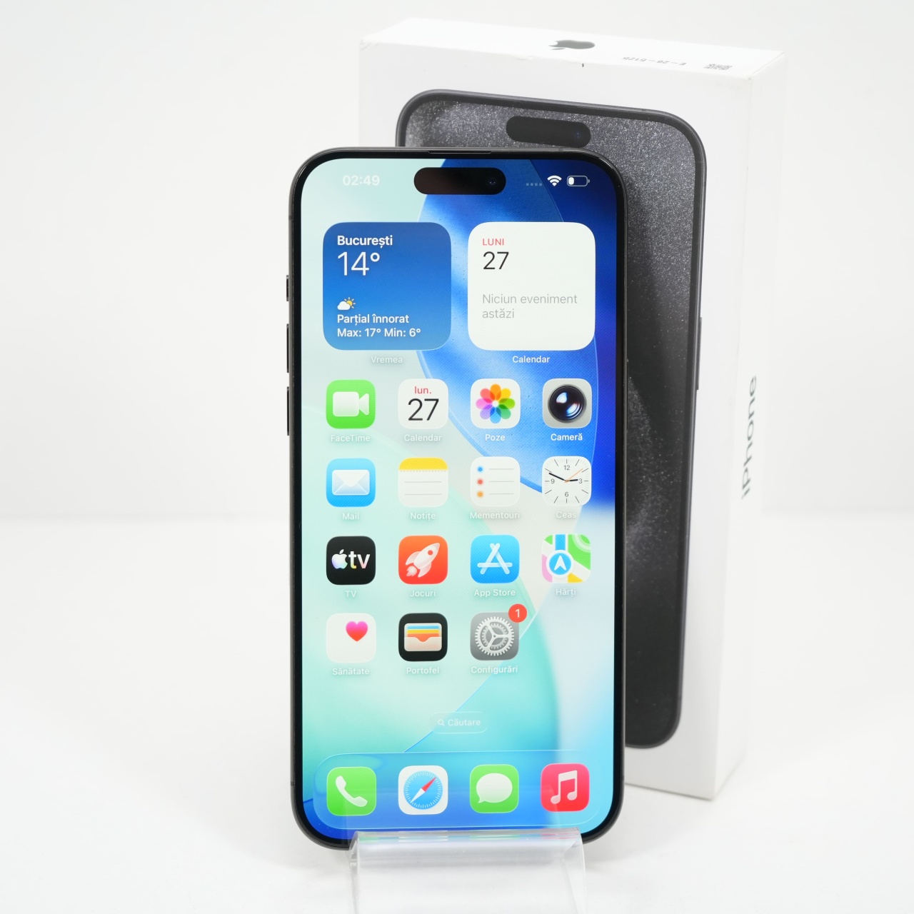 Ecran: 6.7, Refresh Rate 120 Hz Procesor: Apple A17 Pro Memorie RAM: 8 GB Memorie interna: 256GB Camera foto: Principala 48 MPx, Frontala 12 MPx Stare retea: Liber de rețea