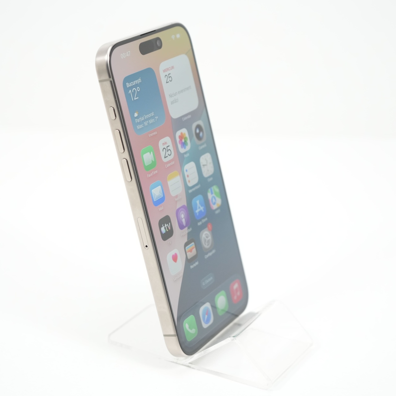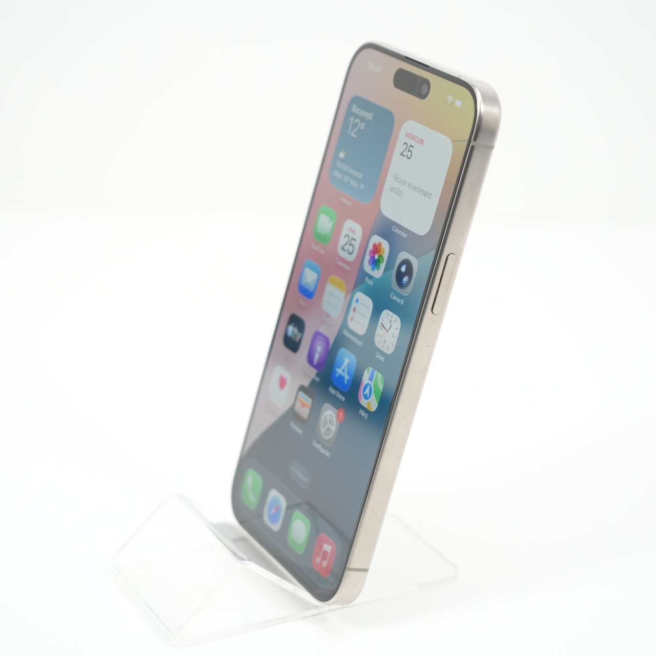 Ecran: 6.7, Refresh Rate 120 Hz Procesor: Apple A17 Pro Memorie RAM: 8 GB Memorie interna: 256GB Camera foto: Principala 48 MPx, Frontala 12 MPx Stare retea: Liber de rețea