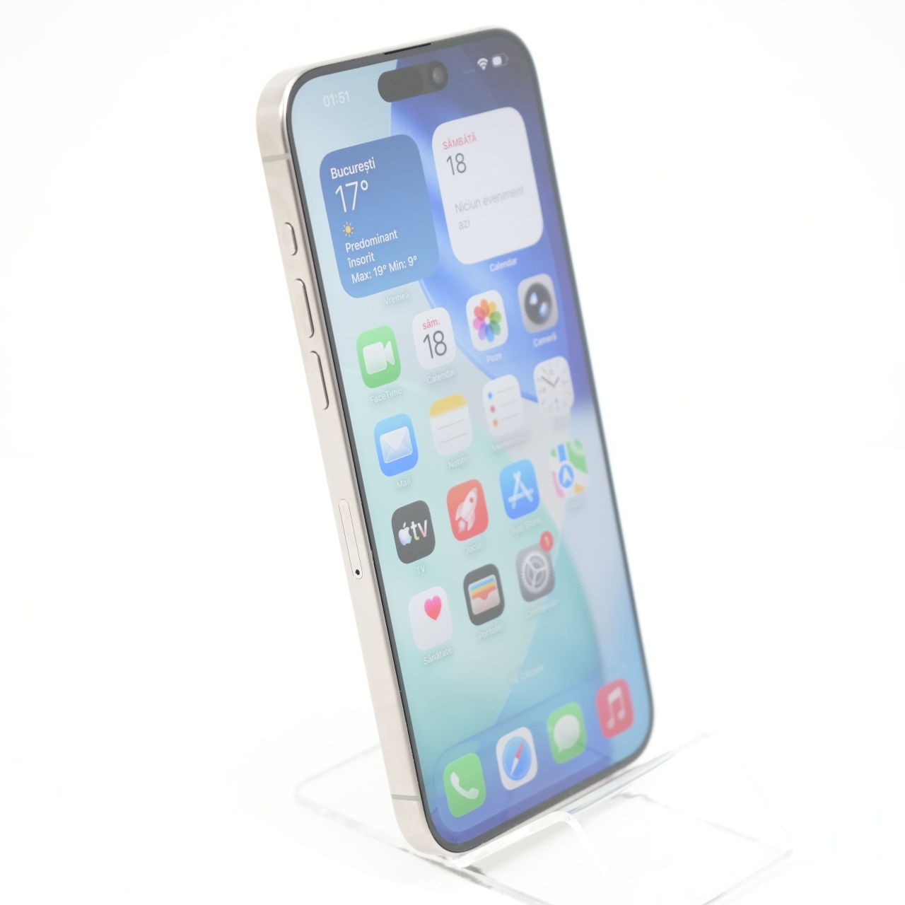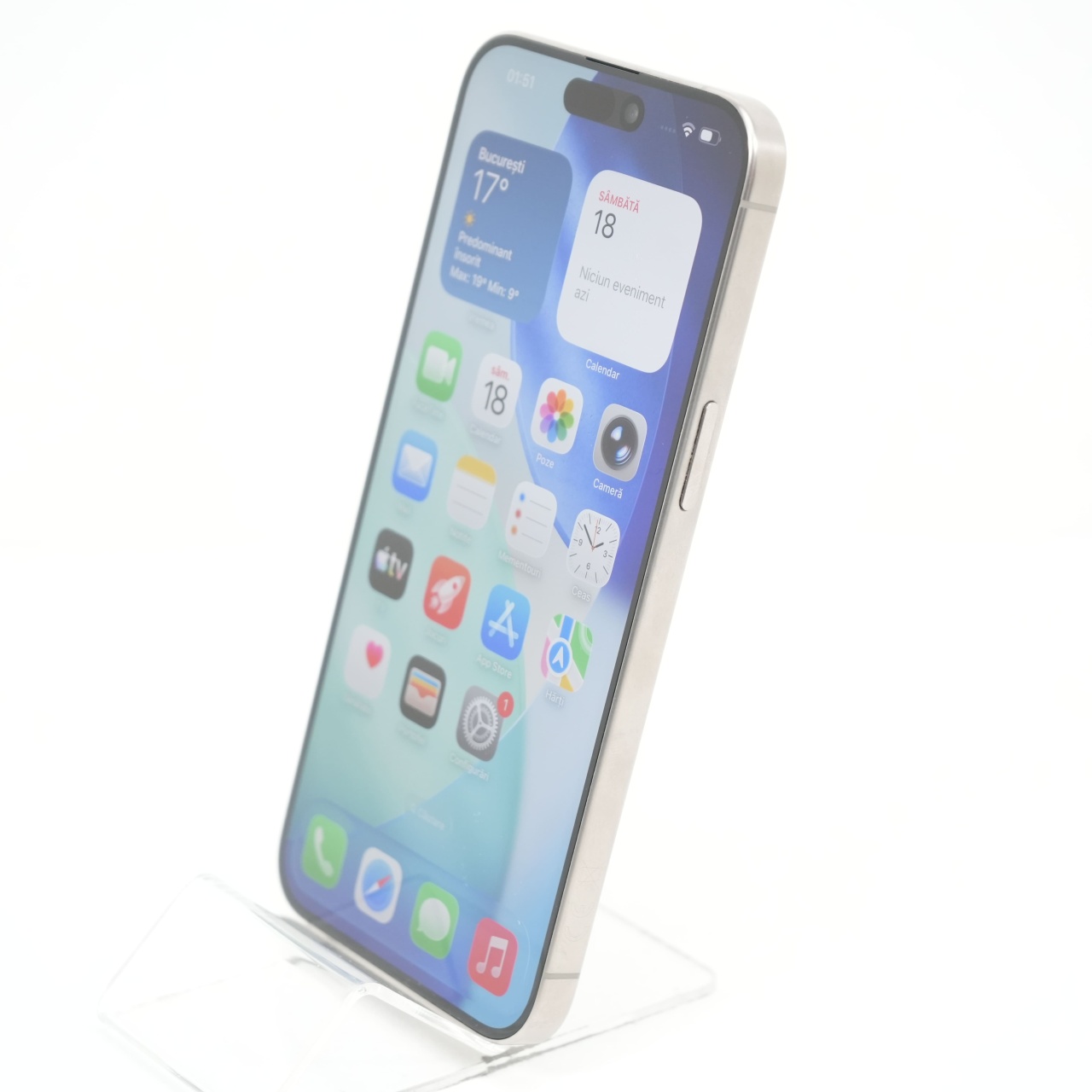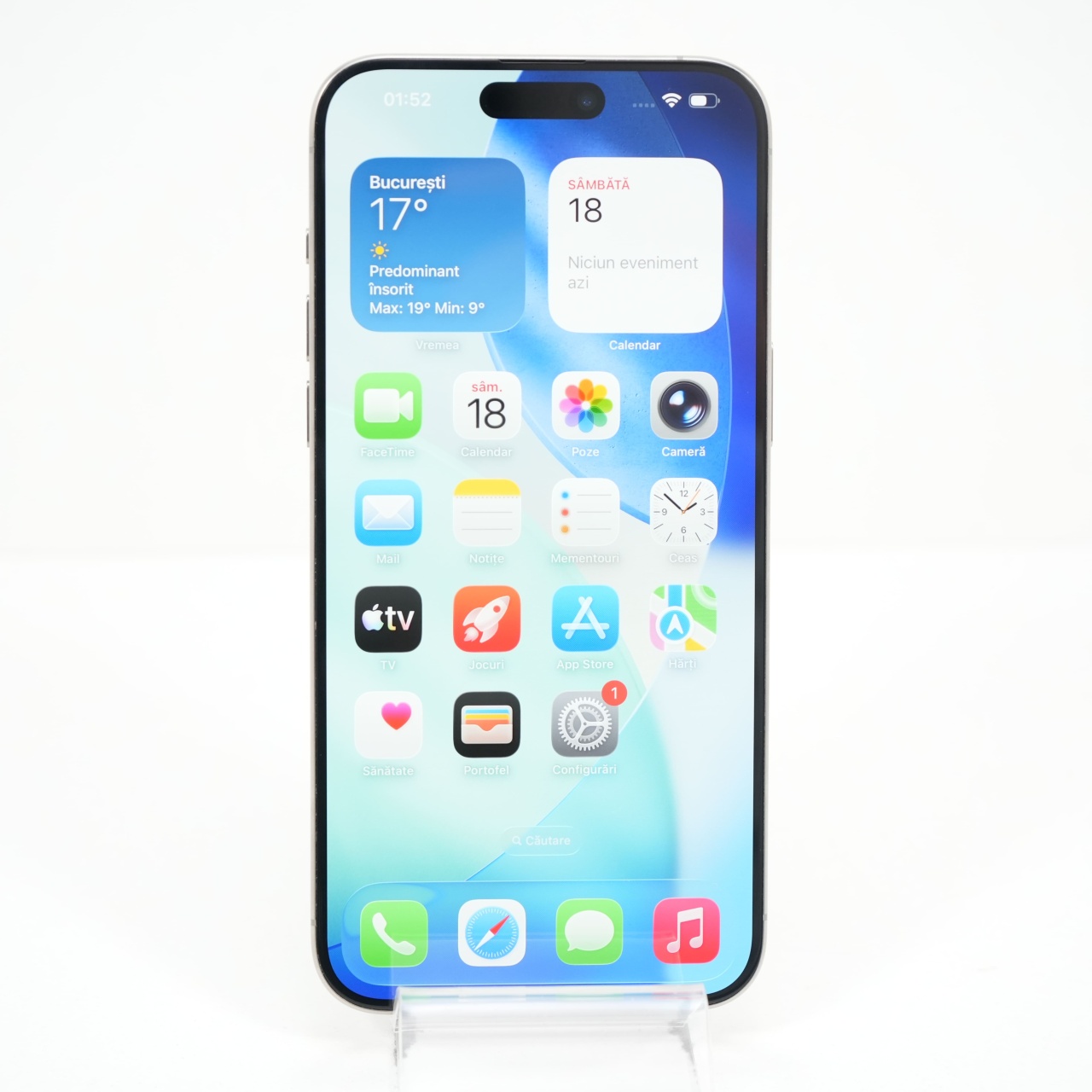 Ecran: 6.7, Refresh Rate 120 Hz Procesor: Apple A17 Pro Memorie RAM: 8GB Memorie interna: 256GB Camera foto: Principala 48 MPx, Frontala 12 MPx Stare retea: Liber de rețea