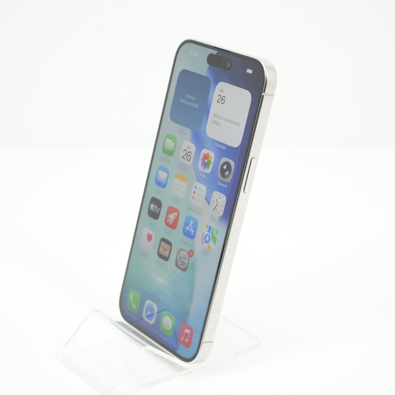Ecran: 6.7, Refresh Rate 120 Hz Procesor: Apple A17 Pro Memorie RAM: 8GB Memorie interna: 256GB Camera foto: Principala 48 MPx, Frontala 12 MPx Stare retea: Liber de rețea