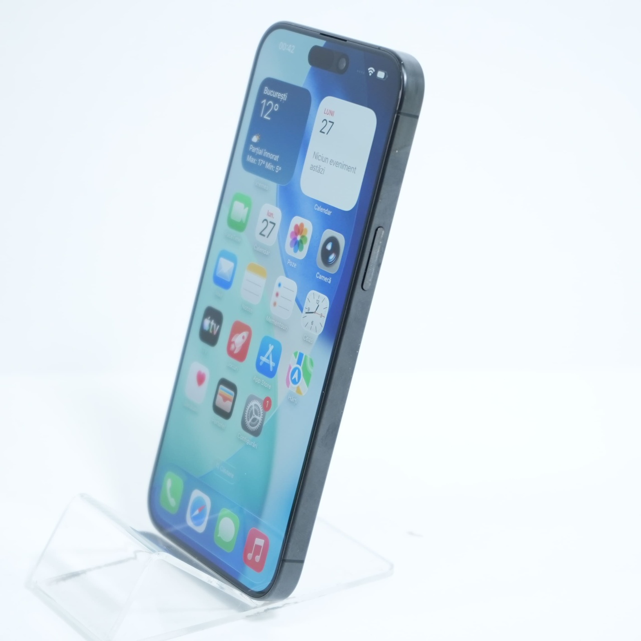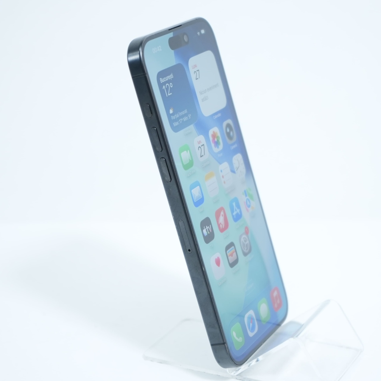 Ecran: 6.7, Refresh Rate 120 Hz Procesor: Apple A17 Pro Memorie RAM: 8GB Memorie interna: 512GB Camera foto: Principala 48 MPx, Frontala 12 MPx Stare retea: Liber de retea