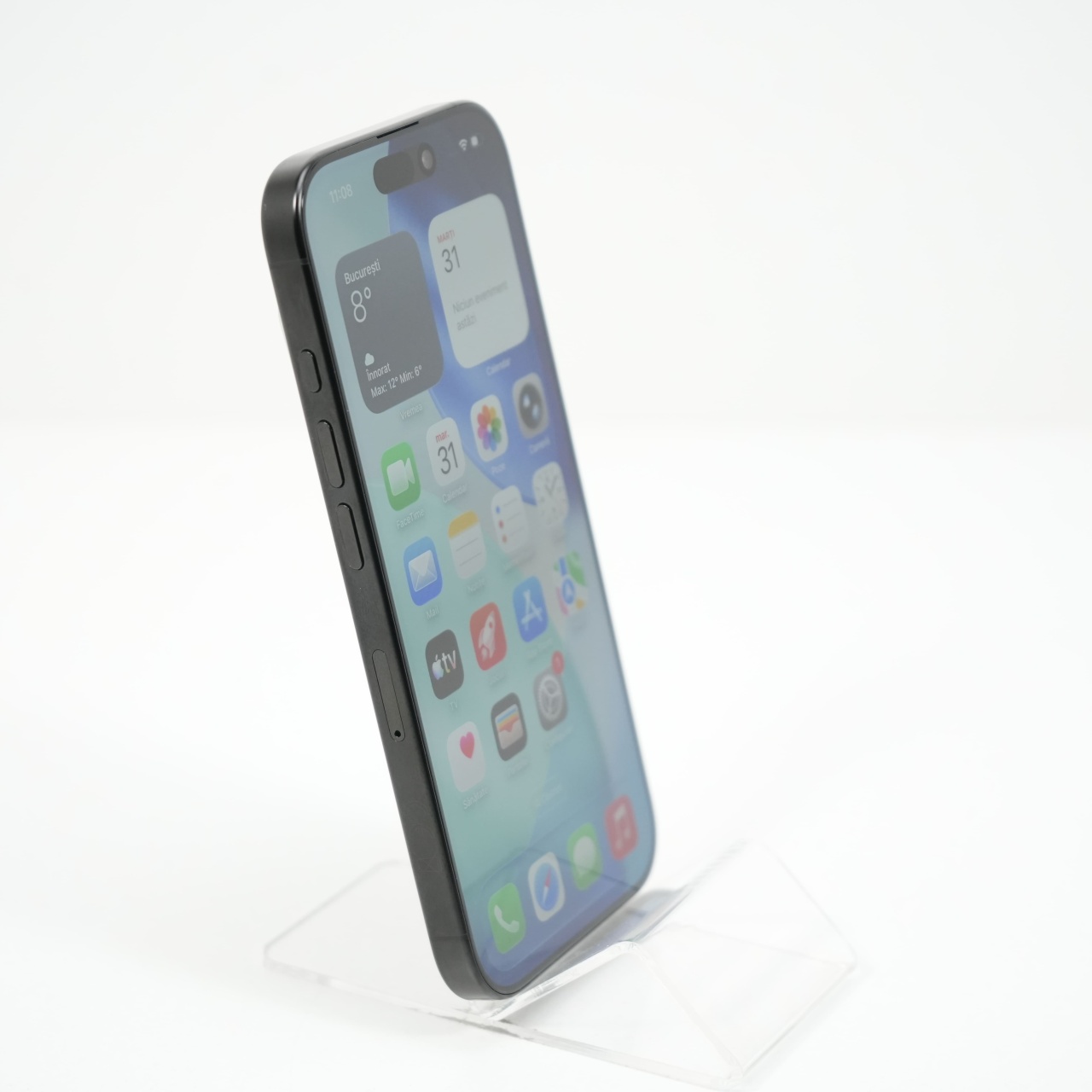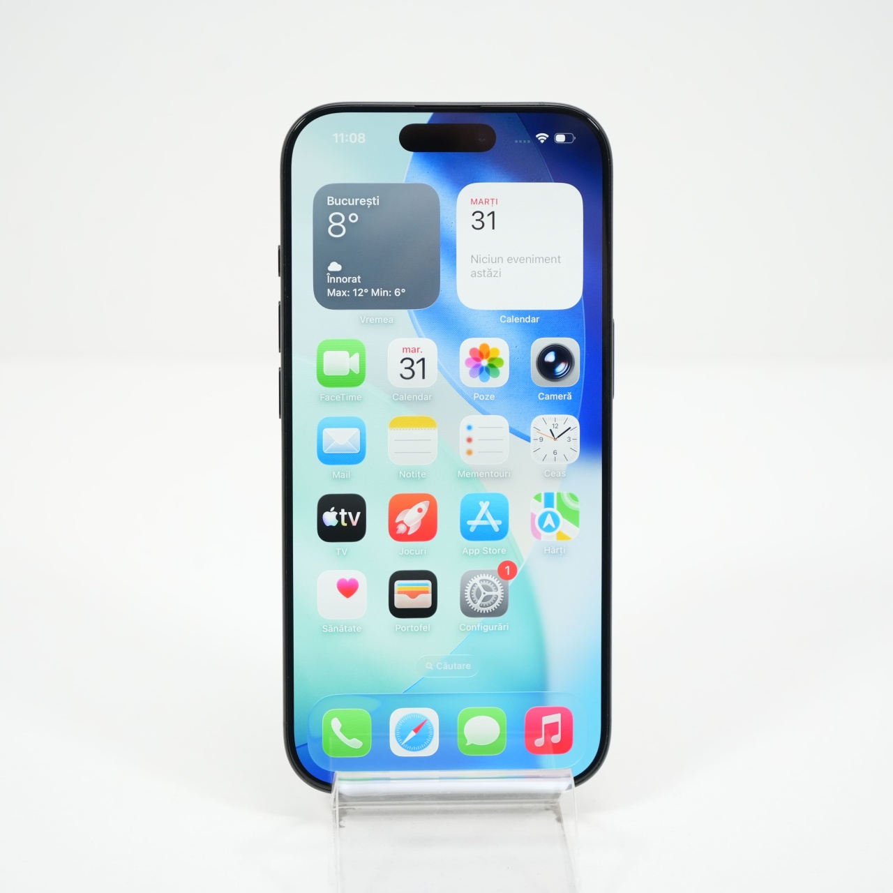 Ecran: OLED 6.3, 120 Hz Procesor: Apple A18 Pro Memorie RAM: 8 GB Memorie interna: 128GB Camera foto: Principala 48 MPx, Frontala 12 MPx Stare retea: Liber de rețea
