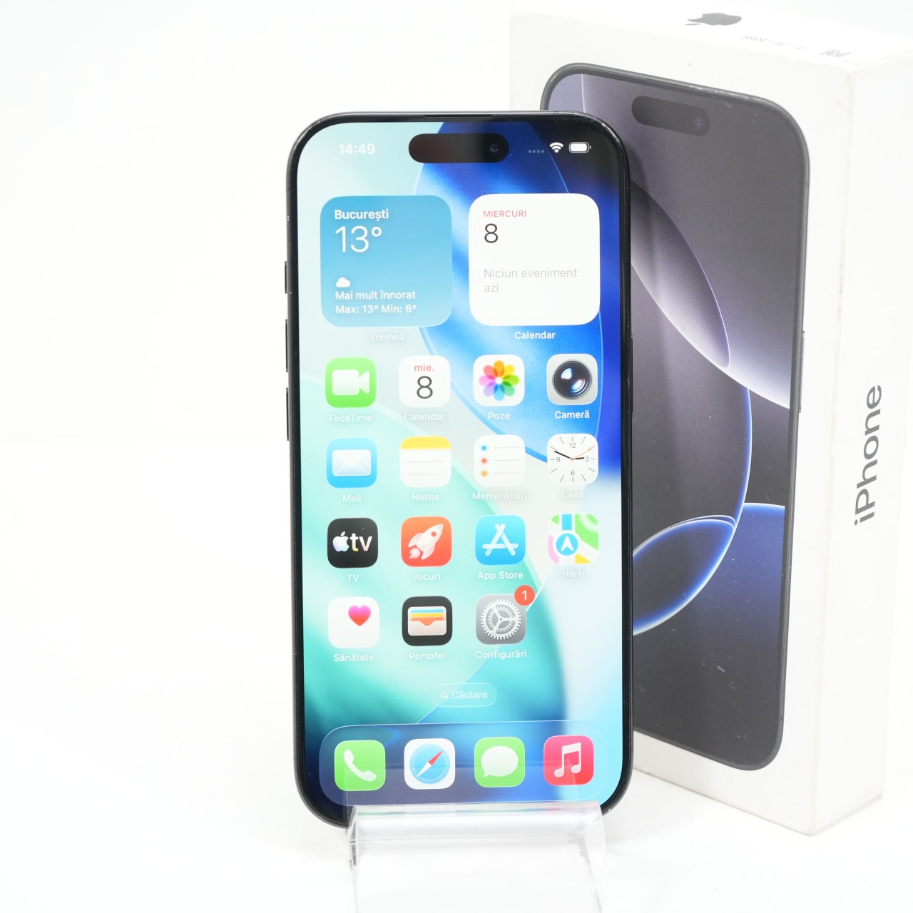 Ecran: OLED 6.3, 120 Hz Procesor: Apple A18 Pro Memorie RAM: 8GB Memorie interna: 128GB Camera foto: Principala 48 MPx, Frontala 12 MPx Stare retea: Liber de retea