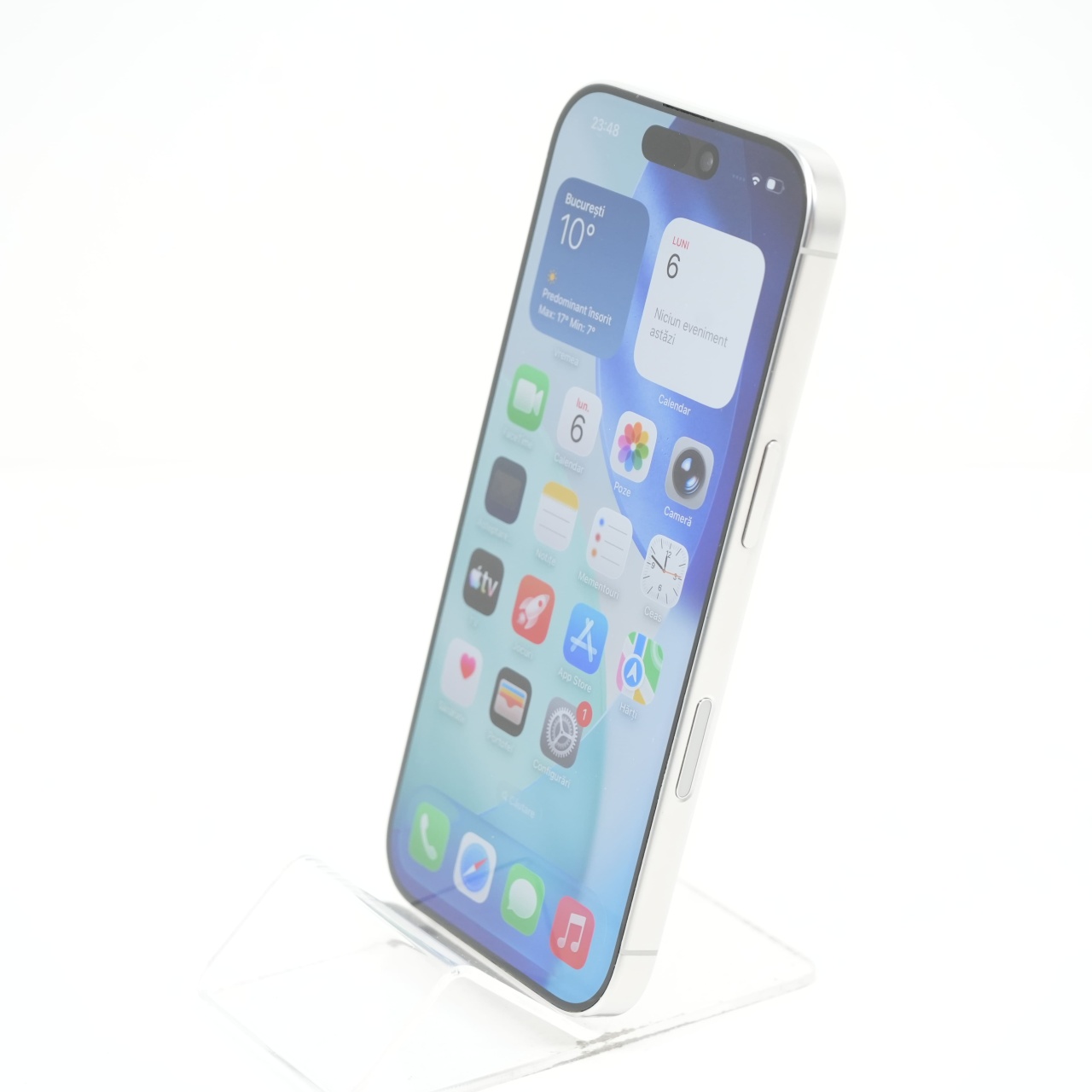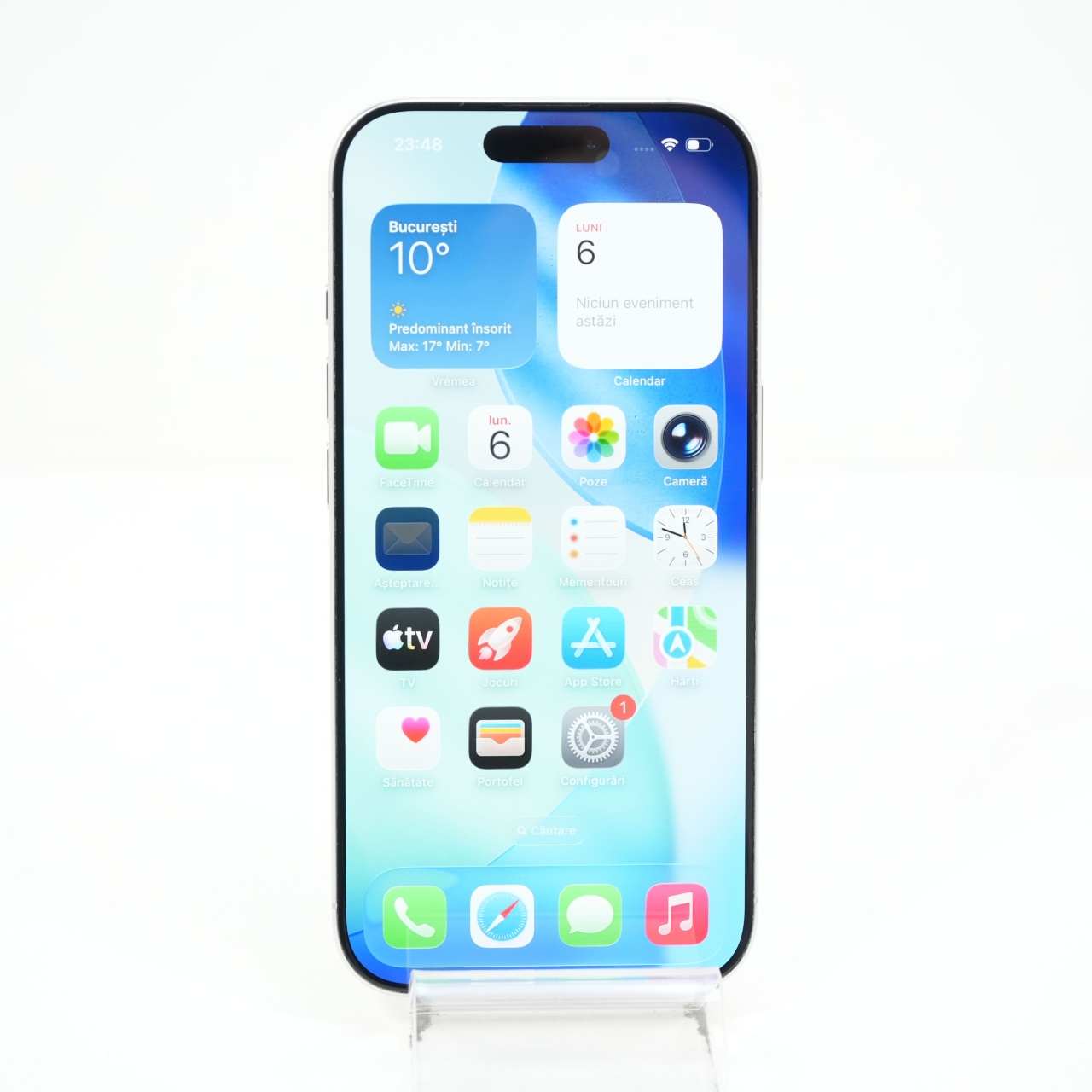 Ecran: OLED 6.3, 120 Hz Procesor: Apple A18 Pro Memorie RAM: 8 GB Memorie interna: 128GB Camera foto: Principala 48 MPx, Frontala 12 MPx Stare retea: Liber de rețea