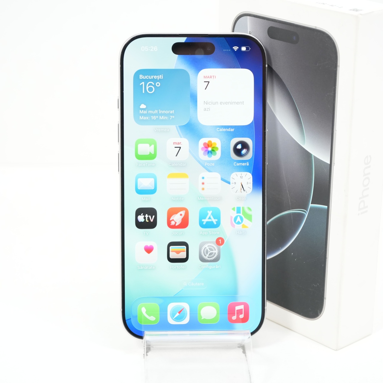 Ecran: OLED 6.3, 120 Hz Procesor: Apple A18 Pro Memorie RAM: 8 GB Memorie interna: 128GB Camera foto: Principala 48 MPx, Frontala 12 MPx Stare retea: Liber de rețea