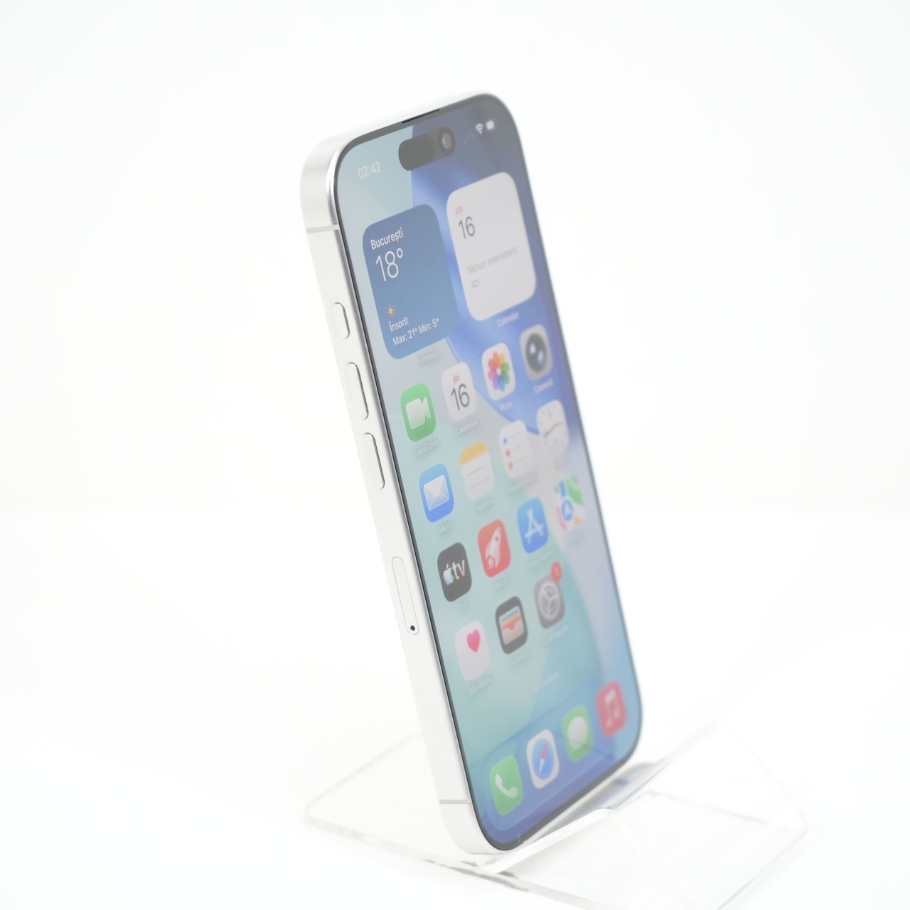 Ecran: OLED 6.3, 120 Hz Procesor: Apple A18 Pro Memorie RAM: 8 GB Memorie interna: 128GB Camera foto: Principala 48 MPx, Frontala 12 MPx Stare retea: Liber de rețea