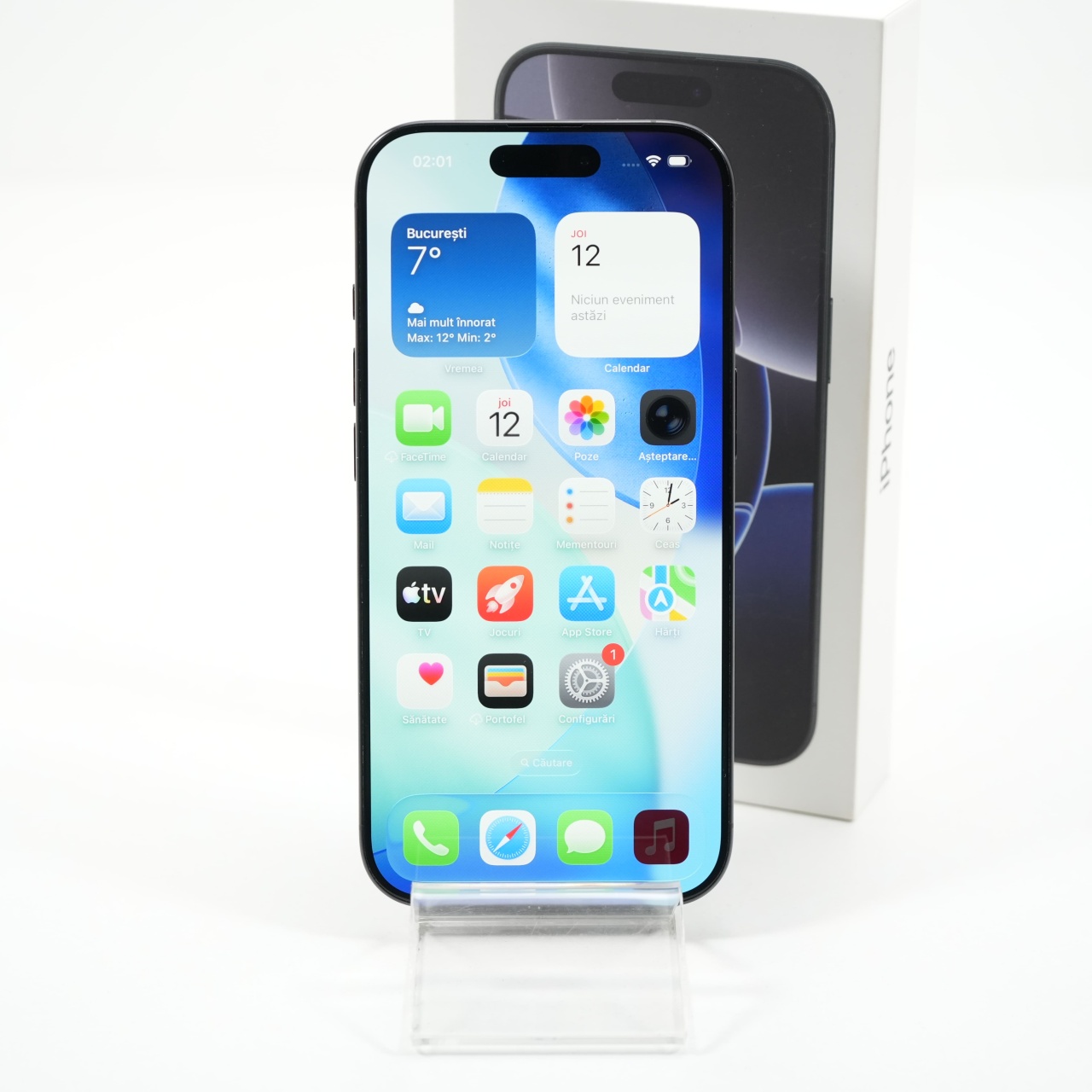 Ecran: OLED de 6.3, Refresh Rate 120 Hz Procesor: Apple A18 Pro Memorie RAM: 8 GB Memorie interna: 256GB Camera Foto: Principala 48 MPx, Frontala 12 MPx Stare retea: Liber de rețea