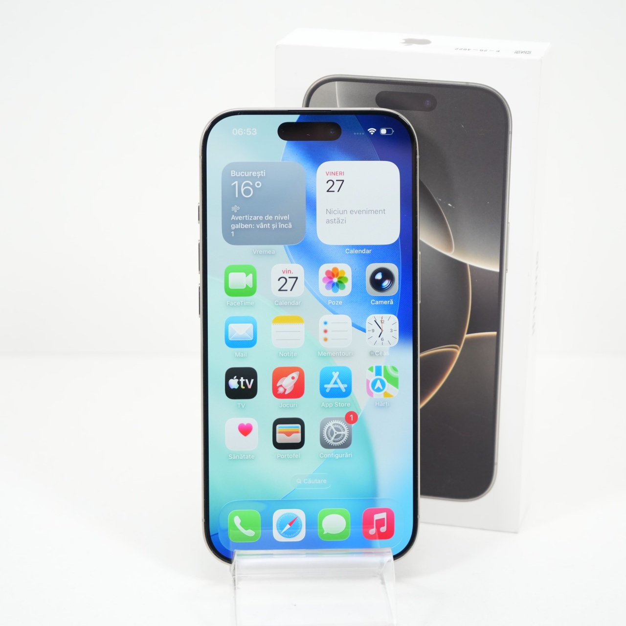 Ecran: OLED de 6.3, Refresh Rate 120 Hz Procesor: Apple A18 Pro Memorie RAM: 8 GB Memorie interna: 256GB Camera Foto: Principala 48 MPx, Frontala 12 MPx Stare retea: Liber de rețea