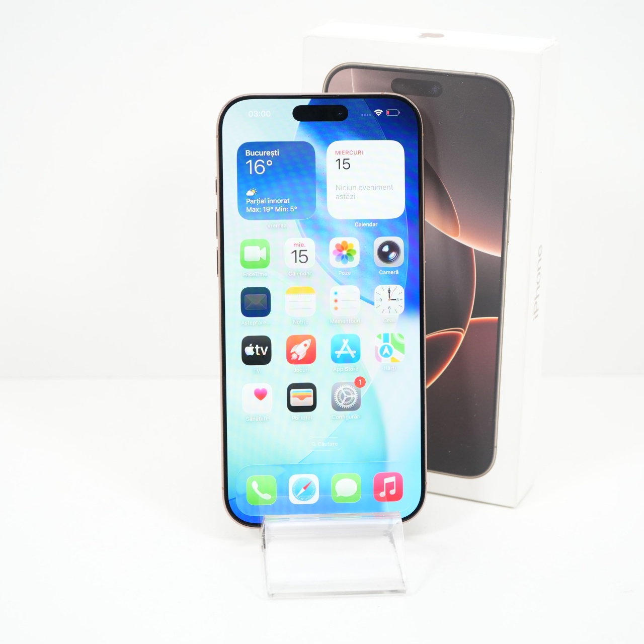 Ecran: OLED de 6.9, Refresh Rate 120 Hz Procesor: Apple A18 Pro Memorie RAM: 8 GB Memorie interna: 256GB Camera Foto: Principala 48 MPx, Frontala 12 MPx Stare retea: Liber de rețea