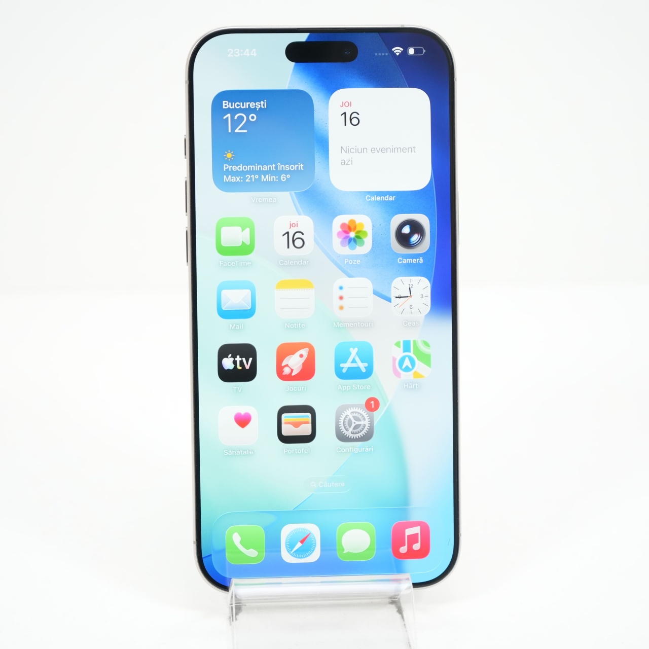 Ecran: OLED de 6.9, Refresh Rate 120 Hz Procesor: Apple A18 Pro Memorie RAM: 8 GB Memorie interna: 256GB Camera Foto: Principala 48 MPx, Frontala 12 MPx Stare retea: Liber de rețea