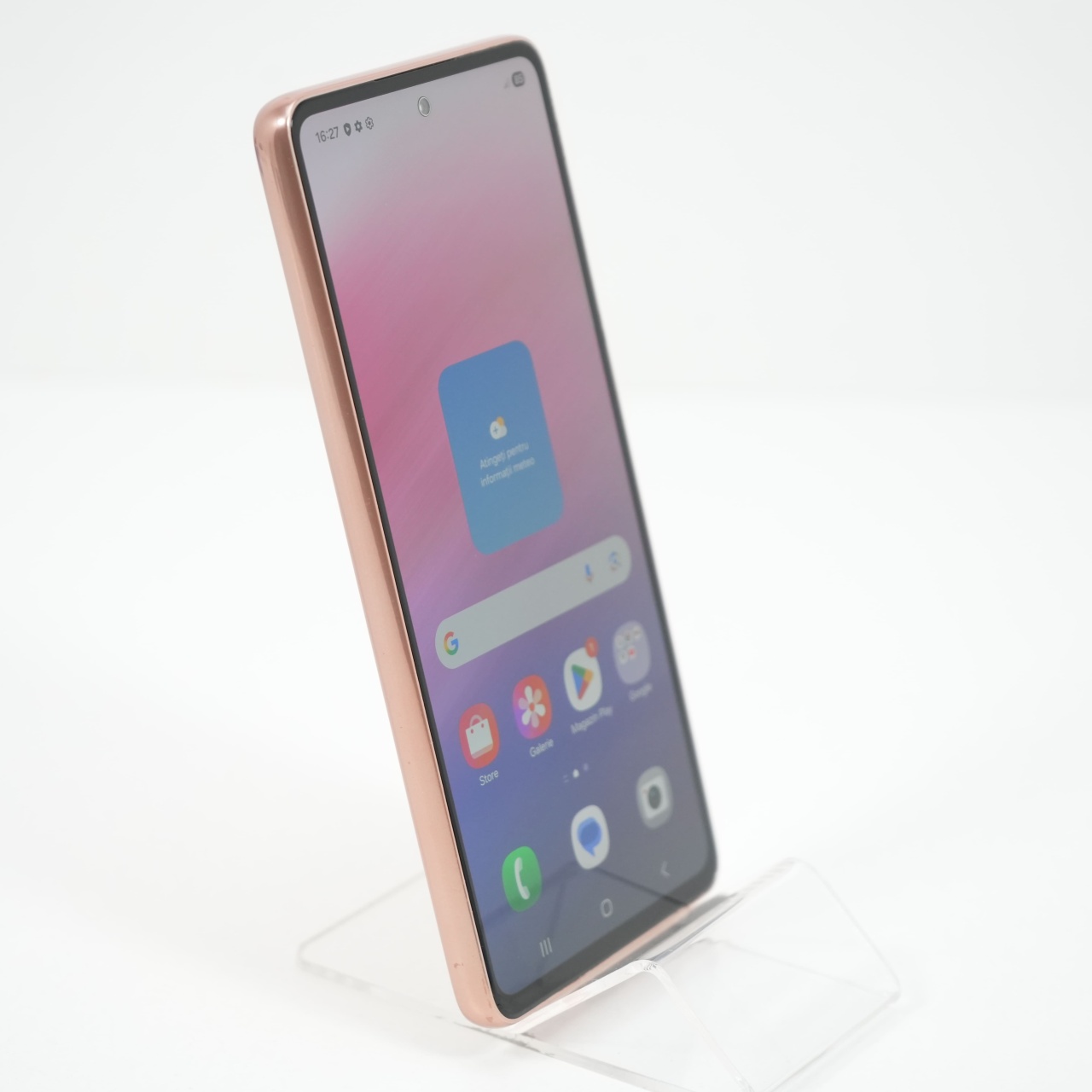 Ecran: 6.5, Refresh Rate 120 Hz Procesor: Exynos 1280 Memorie RAM: 6 GB Memorie interna: 128GB Camera Foto: Principala 64 MPx, Frontala 32 MPx Stare retea: Liber de reteaDual-SIM Accesorii: Cablu de alimentare Prezinta zgarieturi fine pe ecran, spate si zgarieturi pe rama