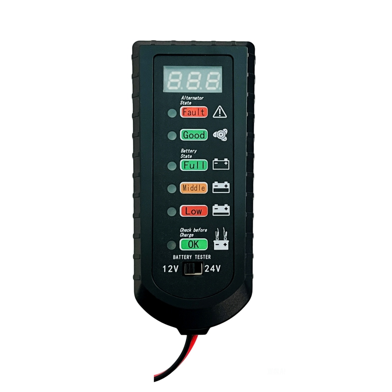 Verifica rapid si precis starea bateriei auto si a alternatorului! Acest tester profesional este proiectat pentru diagnosticarea rapida a tensiunii acumulatorului si functionarea alternatorului pe vehicule cu sistem electric de 12V sau 24V. Este ideal pentru autoturisme, camionete, autoutilitare, SUV-uri si vehicule comerciale usoare. Caracteristici principale: Compatibil cu baterii auto de 12V si 24V Afisaj digital cu 3 cifre LED pentru citire clara a tensiunii Indicatori LED pentru diagnosticarea: Alternatorului: FAULT / GOOD Starii bateriei: LOW / MIDDLE / FULL Incarcare inainte de pornire: OK / NOT OK Masurare precisa a tensiunii intre 4V si 28V Cleme crocodil robuste, izolate, pentru conectare sigura Carcasa rezistenta la socuri, design compact si portabil Tabel de diagnostic automat Produsul foloseste lumini intermitente si culori pentru a indica rapid daca bateria este: Sub tensiunea normala (recomandare: inlocuire) In stare slaba sau incarcata partial In stare buna sau complet incarcata Supraîncarcata (poate indica defect la regulatorul de tensiune) Continut pachet: 1 x Tester digital baterie 12V/24V 2 x Cleme de testare (rosie + neagra) 1 x Manual de utilizare Utilizare recomandata pentru: Mecanicii auto Soferii care doresc sa monitorizeze starea bateriei Verificari de rutina inainte de drumuri lungi sau sezon rece FAQ – Intrebari frecvente Este compatibil cu baterii AGM sau GEL? (EN: Is it compatible with AGM or GEL batteries?) ✔️ Da, testerul poate fi folosit pentru orice tip de baterie auto de 12V sau 24V. Poate testa si alternatorul? (EN: Can it test the alternator?) ✔️ Da, afiseaza starea alternatorului prin LED-ul FAULT sau GOOD. Are protectie la conectare gresita? (EN: Does it have reverse polarity protection?) ✔️ Da, este dotat cu protectie la polaritate inversa. Trebuie alimentat separat? (EN: Does it require a separate power source?) ❌ Nu, se alimenteaza direct de la bateria testata. Functioneaza si pentru camioane de 24V? (EN: Is it suitable for 24V trucks?) ✔️ Da, este ideal pentru vehicule de 24V precum camioane usoare sau furgonete.
